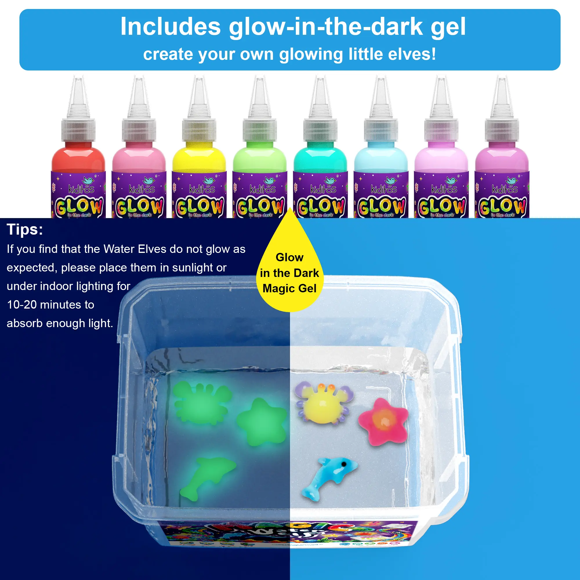 ·Meaningful Gift: The Kiditos Aqua Fairy Water Gel Kit is an engaging way to stimulate children's fine motor skills and creativity. With 8 vibrant Glow in the Dark gel colors and 10 molds, it offers endless opportunities for fun DIY activities. This kit is a valuable alternative to screen time and makes for a truly meaningful gift for any child!