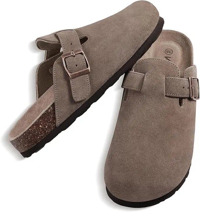 ·Material & Design: These clogs are made from genuine suede, offering a soft and comfortable feel. The round toe design ensures a snug fit. 🌿