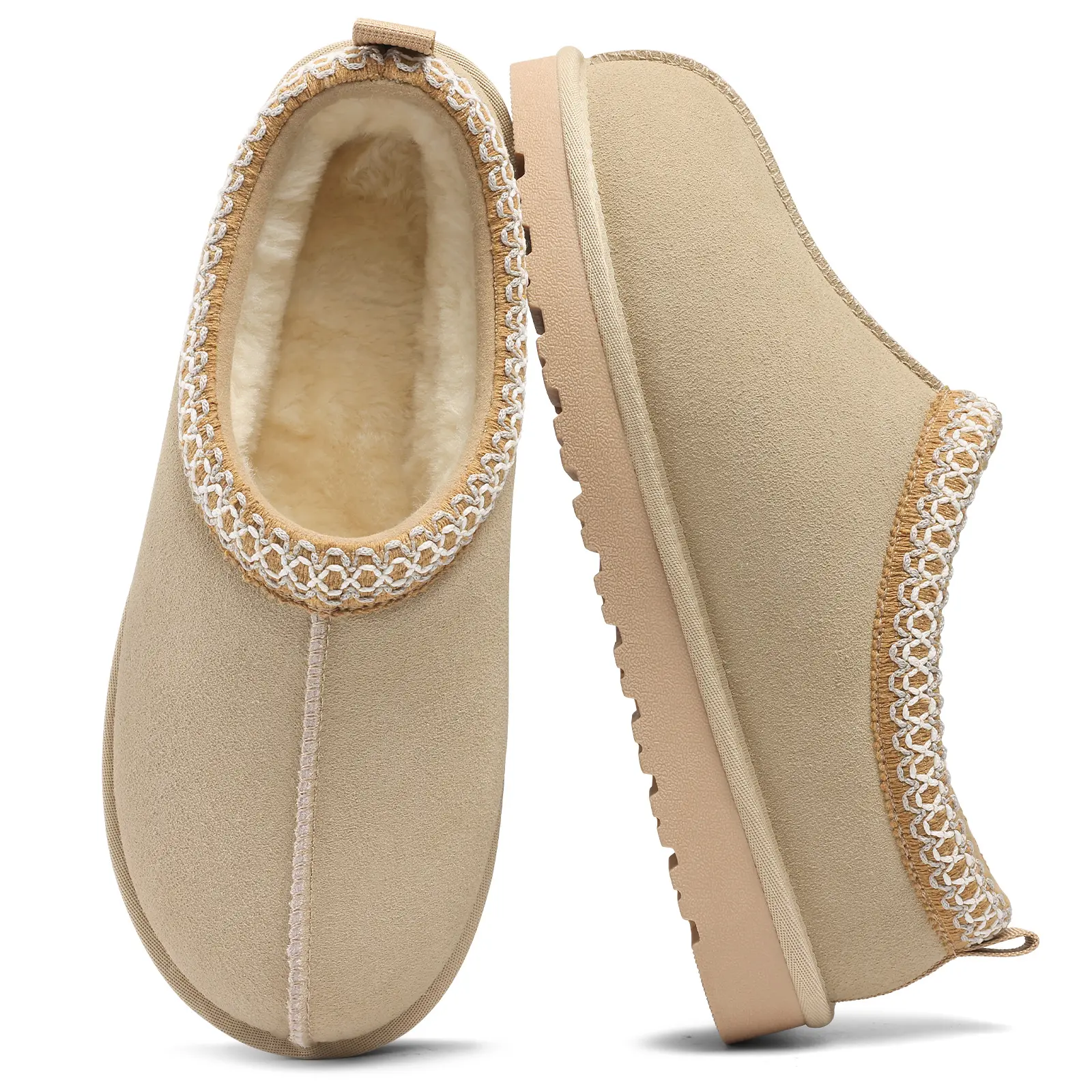Excellent quality platform slipper for this price! I really didn’t expect much, but these surprised me! Cozy, heavy duty quality, genuine suede, great stitching. 10/10