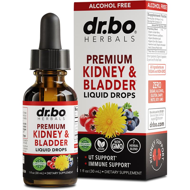 Dr. Bo Kidney & Bladder Support Cleanse Liquid Drops - Renal Detox Tincture - Organic Juniper Berry, Dandelion, Chanca Piedra - 30 Servings