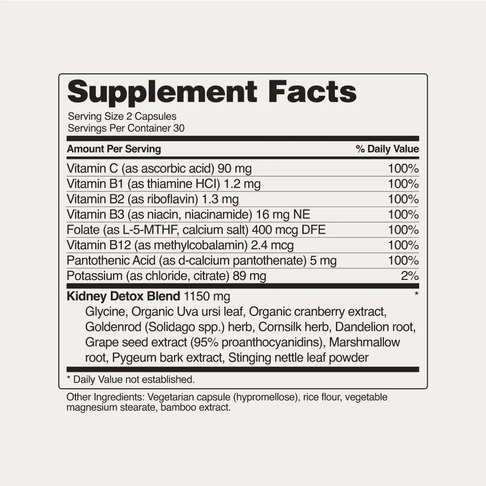 Our blend of traditional herbs and antioxidants helps maintain urinary tract wellness and detoxify the kidneys.