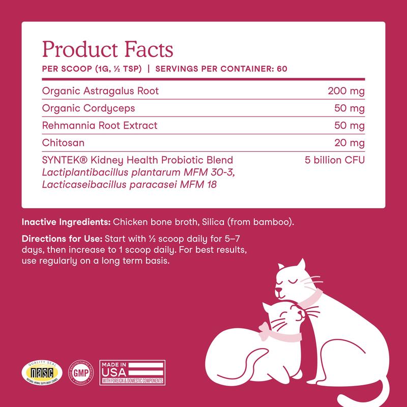 My family of felines uses this and as they get older, I use this to keep their kidneys healthy. I simply sprinkle over their wet food and they gobble it up!! Love the organic ingredients. Peace of mind is priceless!♡♡