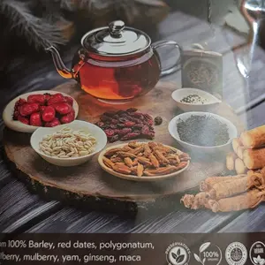 It's all that I expected! Light & tasteful. Highly recommend. But what you're getting all in a tea bag: Barley, red dates, polygonatum, wolfberry, mulberry, yam, ginseng, and maca.