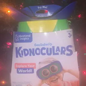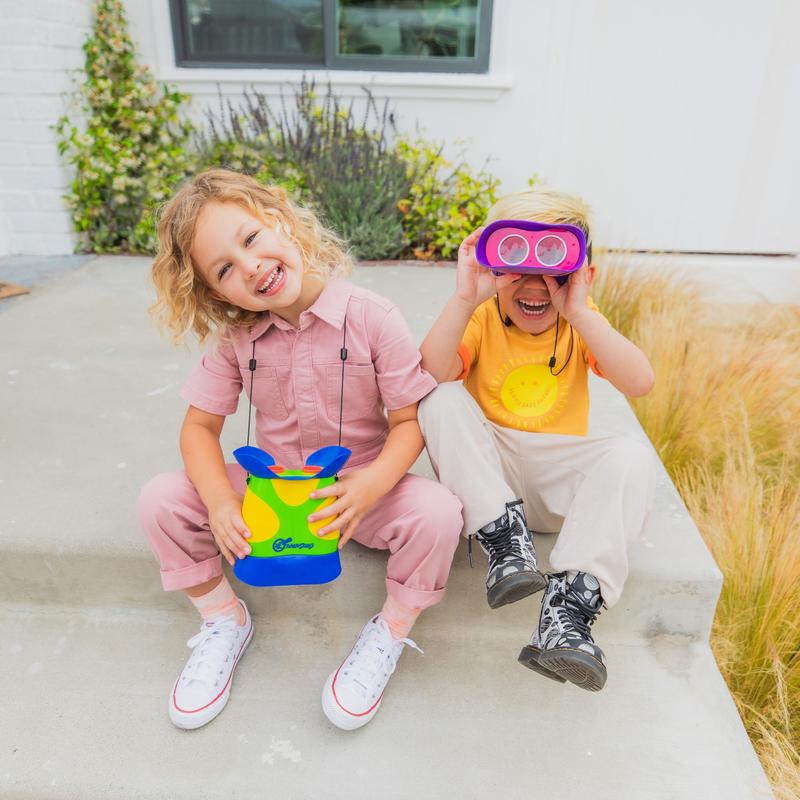 Kidnoculars feature easy-placement goggles, 2x magnification, and a breakaway neck strap. Ideal for sensory play and pocket-sized puzzle games.