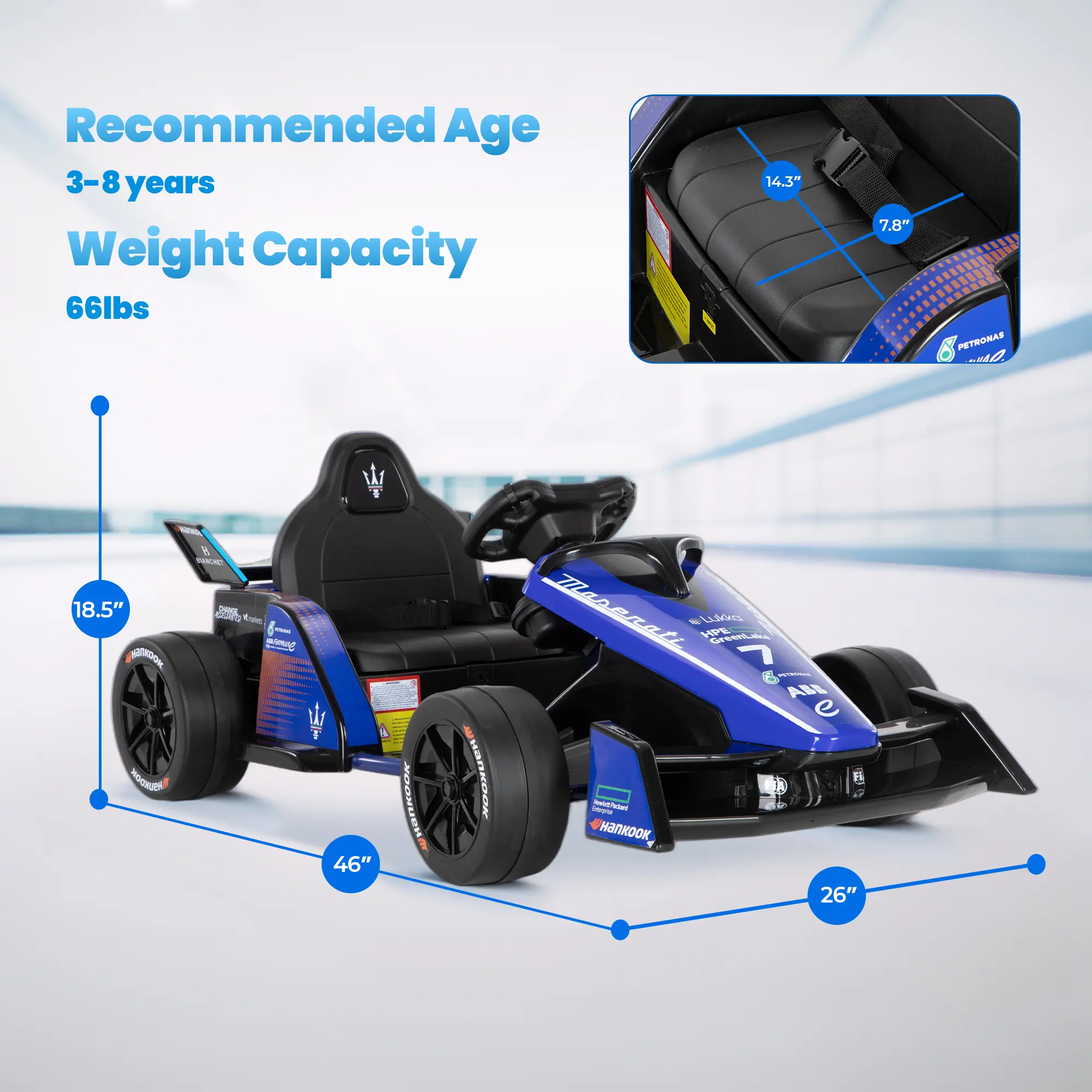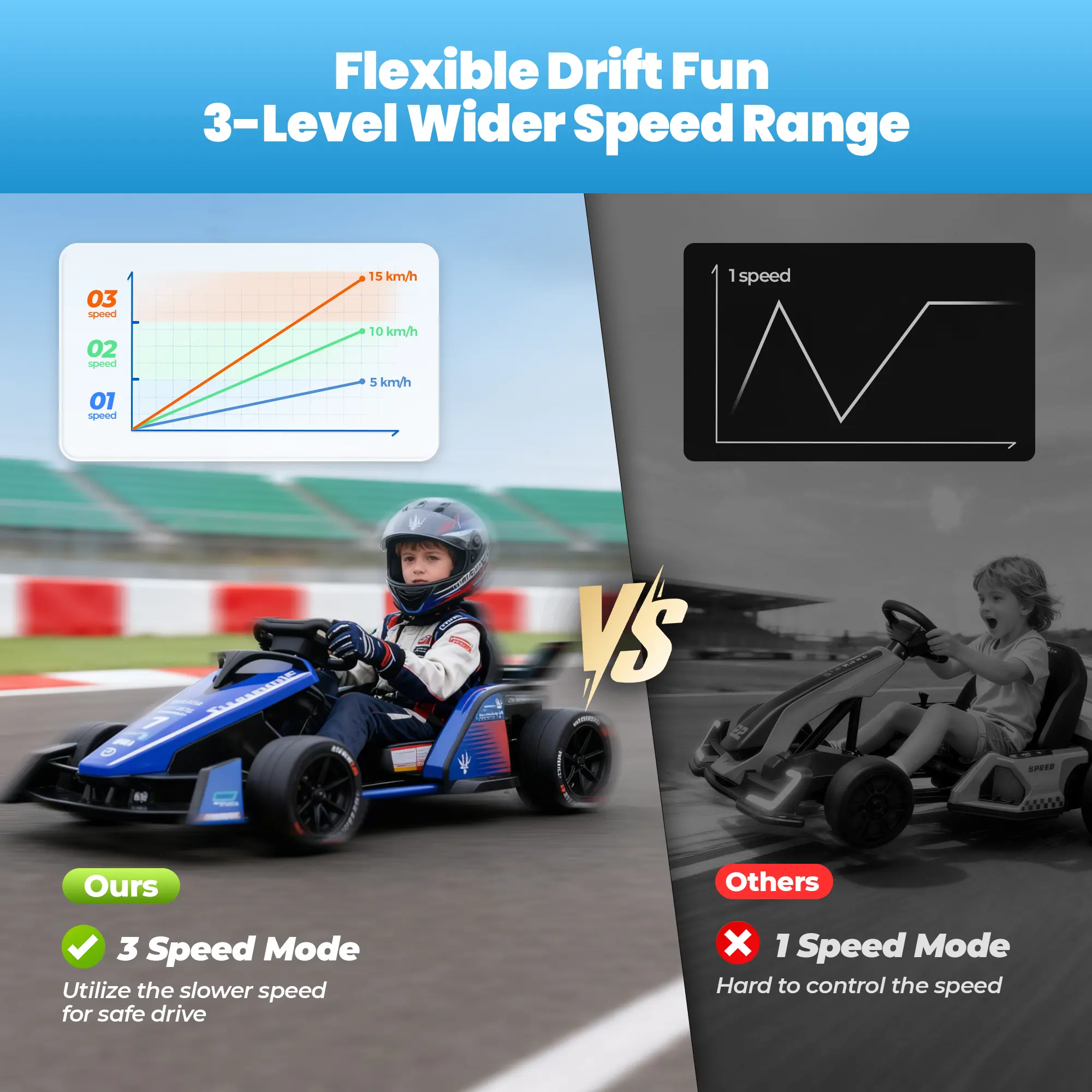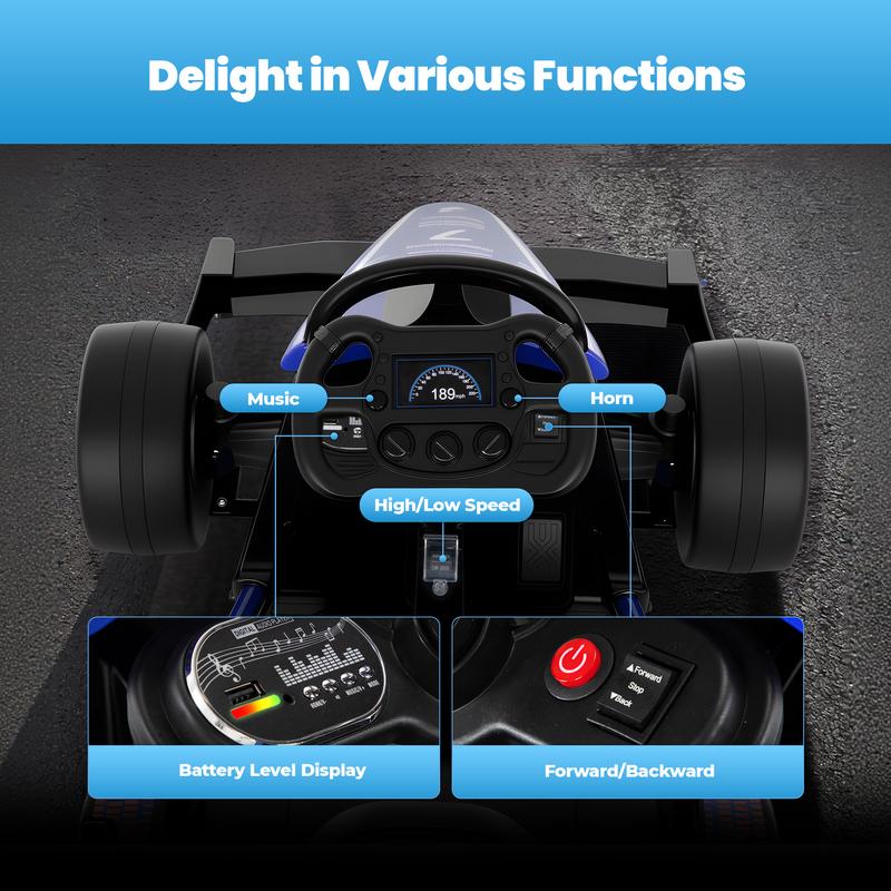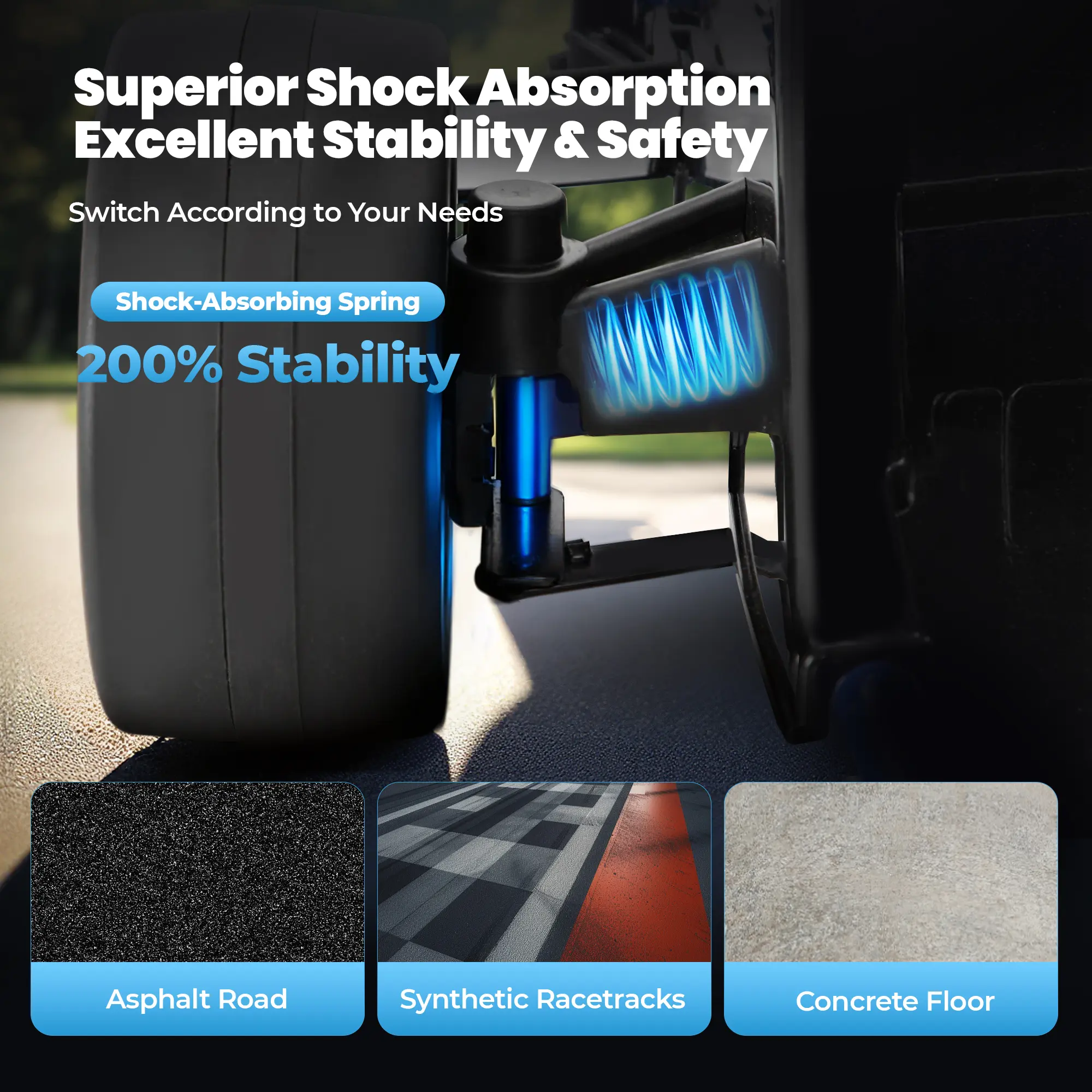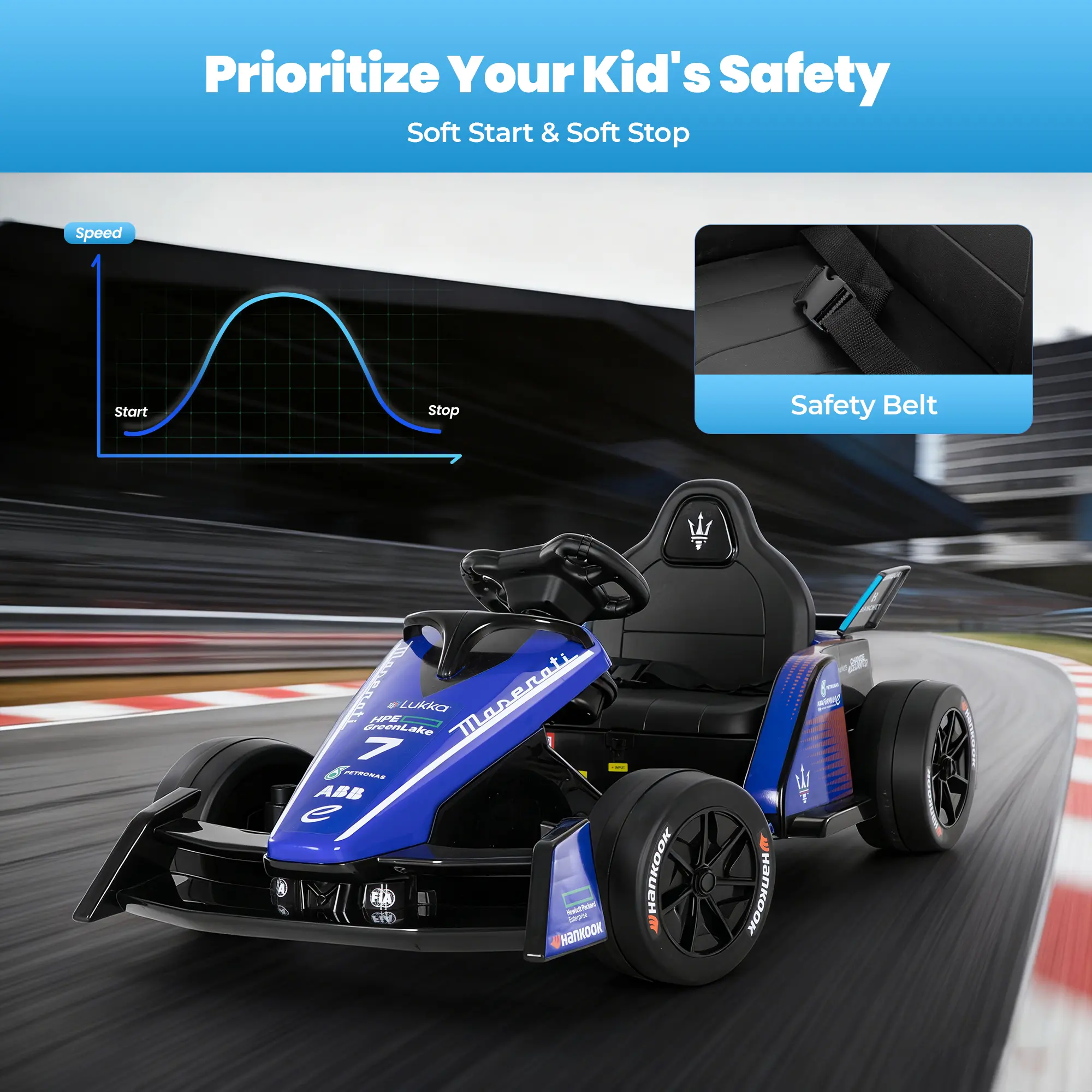·Safe & Kid-Friendly – Racing seat with safety belt, stable low center design