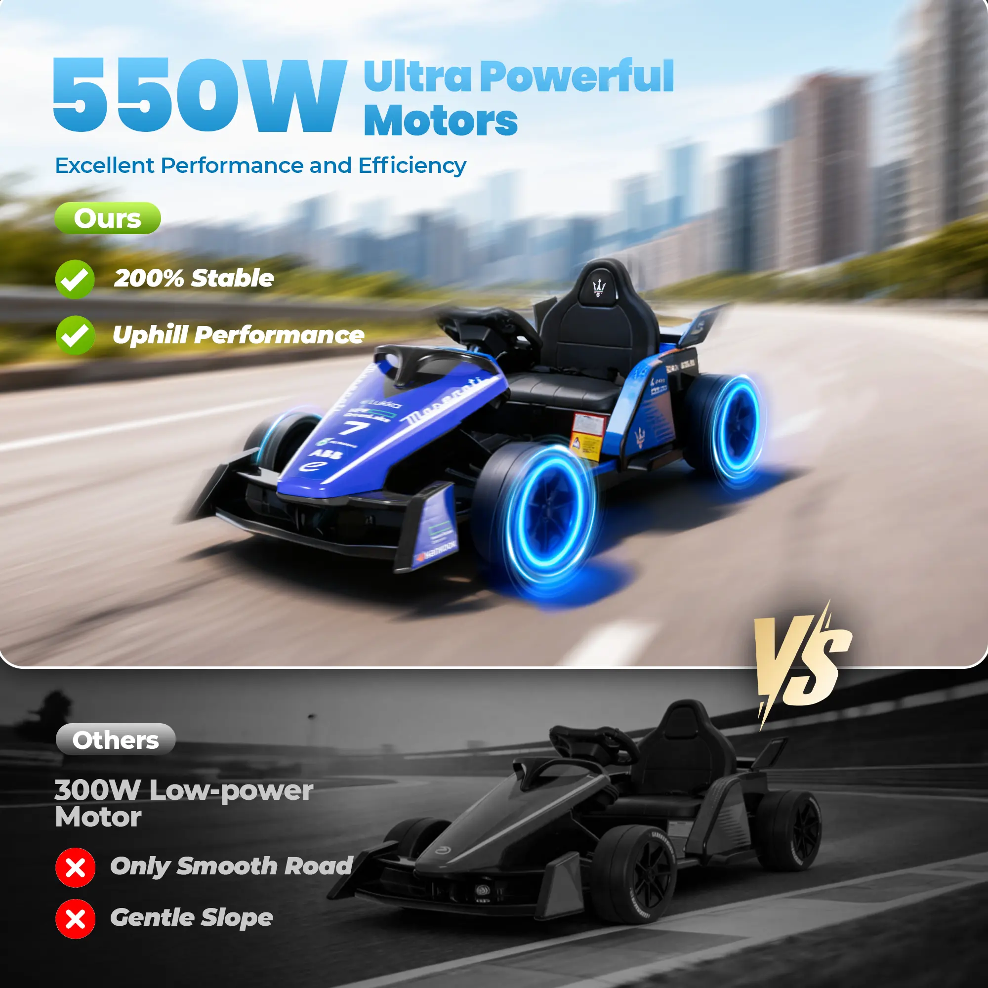 ·Powerful 12V Battery & Dual 550W Motors: Reach speeds up to 3.11 MPH with a long-lasting 12V battery and two 550W motors, ensuring smooth acceleration and impressive speed for a thrilling yet safe driving experience