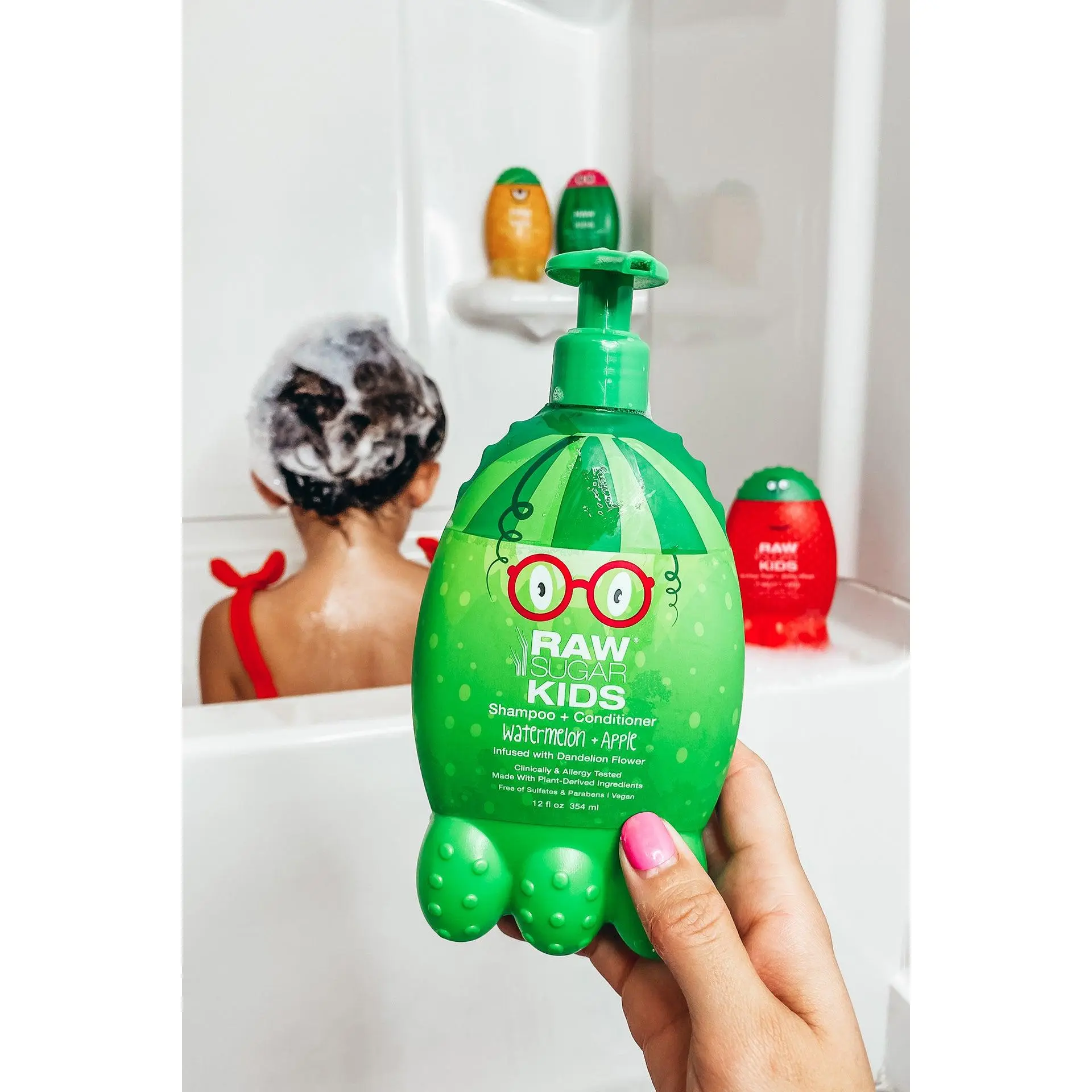 Pump small amount into your palm and apply to hair. Gently lather up and rinse clean. Follow up with Raw Sugar KIDS Conditioning Detangler for smooth and tangle-free hair.