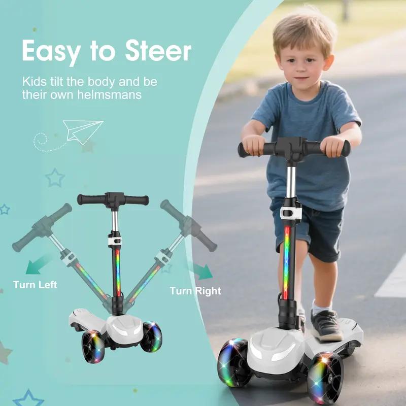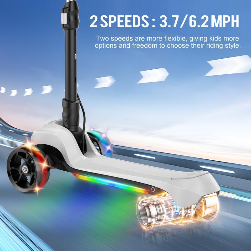 5. 【New Year Sale】Electric Scooter, Light Up 3-Wheels Electric Scooter for Kids Age 3-8, 3-Height Adjustable, 1 Hour Playtime, Bluetooth Control, 110LBS Max Load Foldable Electric Scooter with Foot Brake