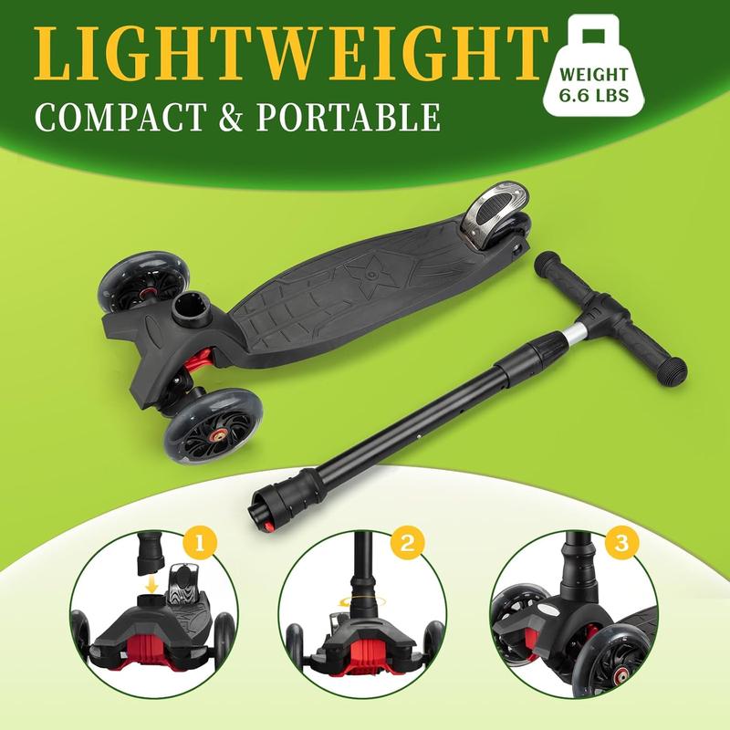 【Perfect Beginner Scooter with Lean-to-Steer】 Unique lean-to-steer technology makes turning intuitive, safe, and easy for young riders. The stable 3-wheel design provides excellent balance, ideal for toddler scooter beginners or kids scooter riders of any skill level (scooters for kids 5-7 included). Just hop on and go!