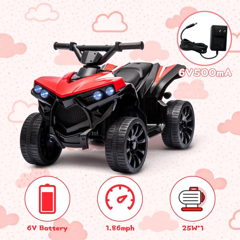 5. Kids ATV 4 Wheeler, 6V Ride on Quad Car with LED Lights, Music, Foot Pedal & Wear-Resistant Wheels, Battery Powered Electric Vehicle for Kids Toddler-Red
