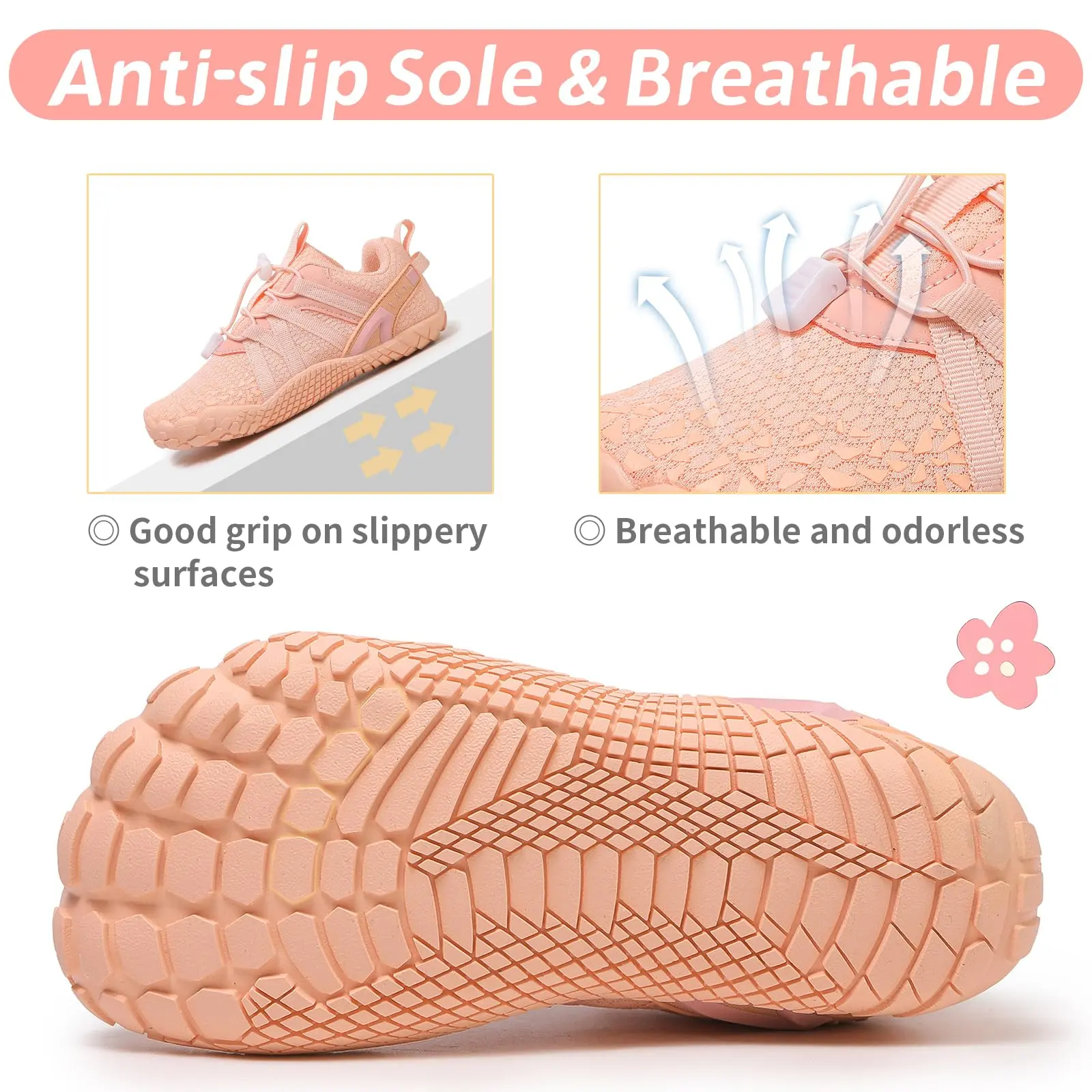 • Versatile Use: These shoes can be used as casual running shoes, barefoot water shoes, or barefoot sports shoes. They are non-slip, ensuring safety during various activities like wading.