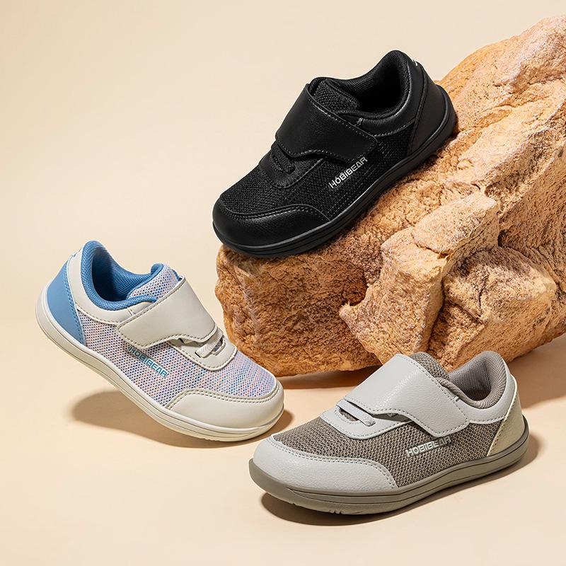 HOBIBEAR Kids Wide Barefoot Shoes are designed for boys and girls. These minimalist zero drop sneakers offer a comfortable fit for toddlers, little kids, and big kids. The design ensures ease of movement and natural foot development. Ideal for everyday wear, these shoes are a versatile addition to any child's wardrobe.