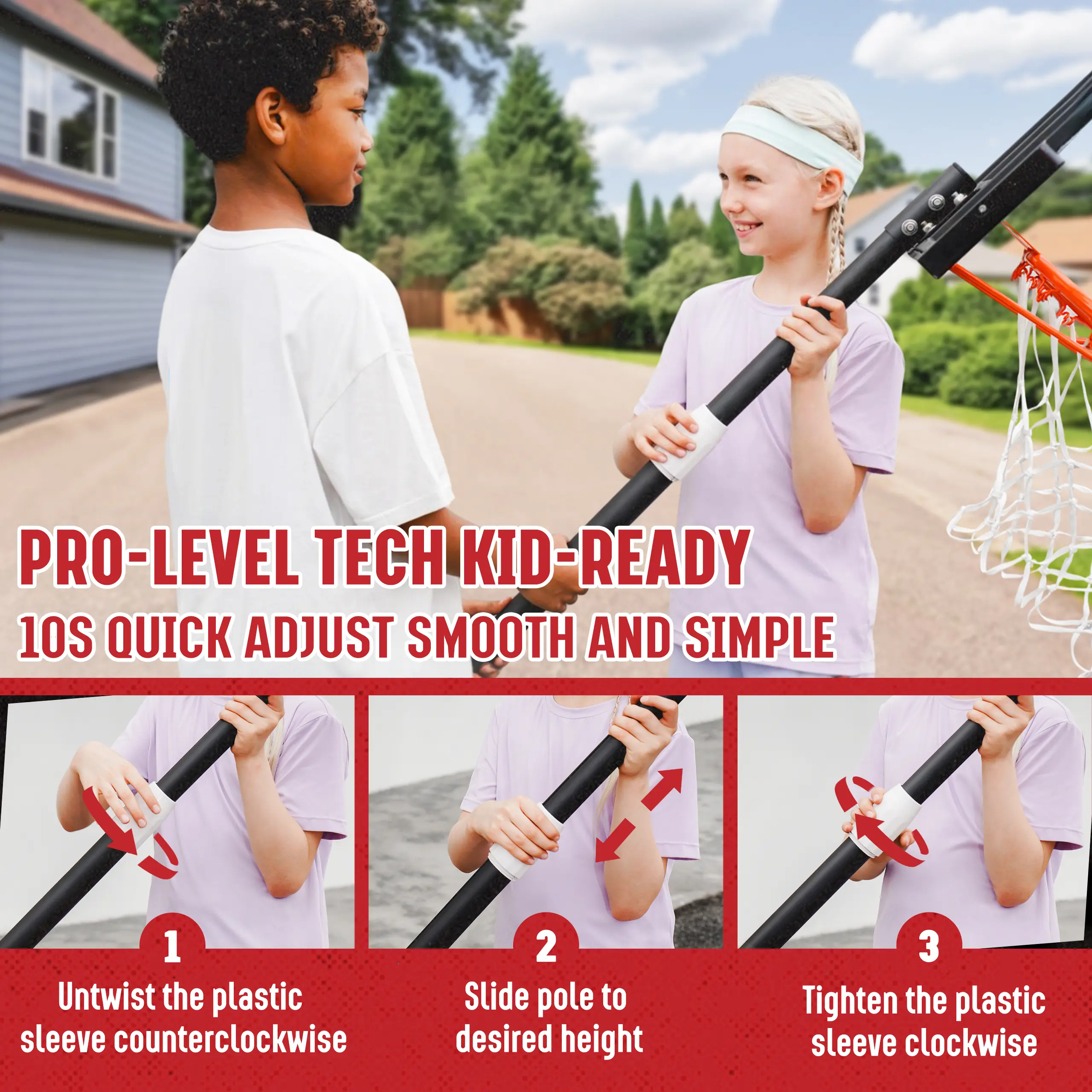 3-9 FT Height-Adjustable: Suitable for growing kids, teens, youth, and adults with 18 adjustable height levels.