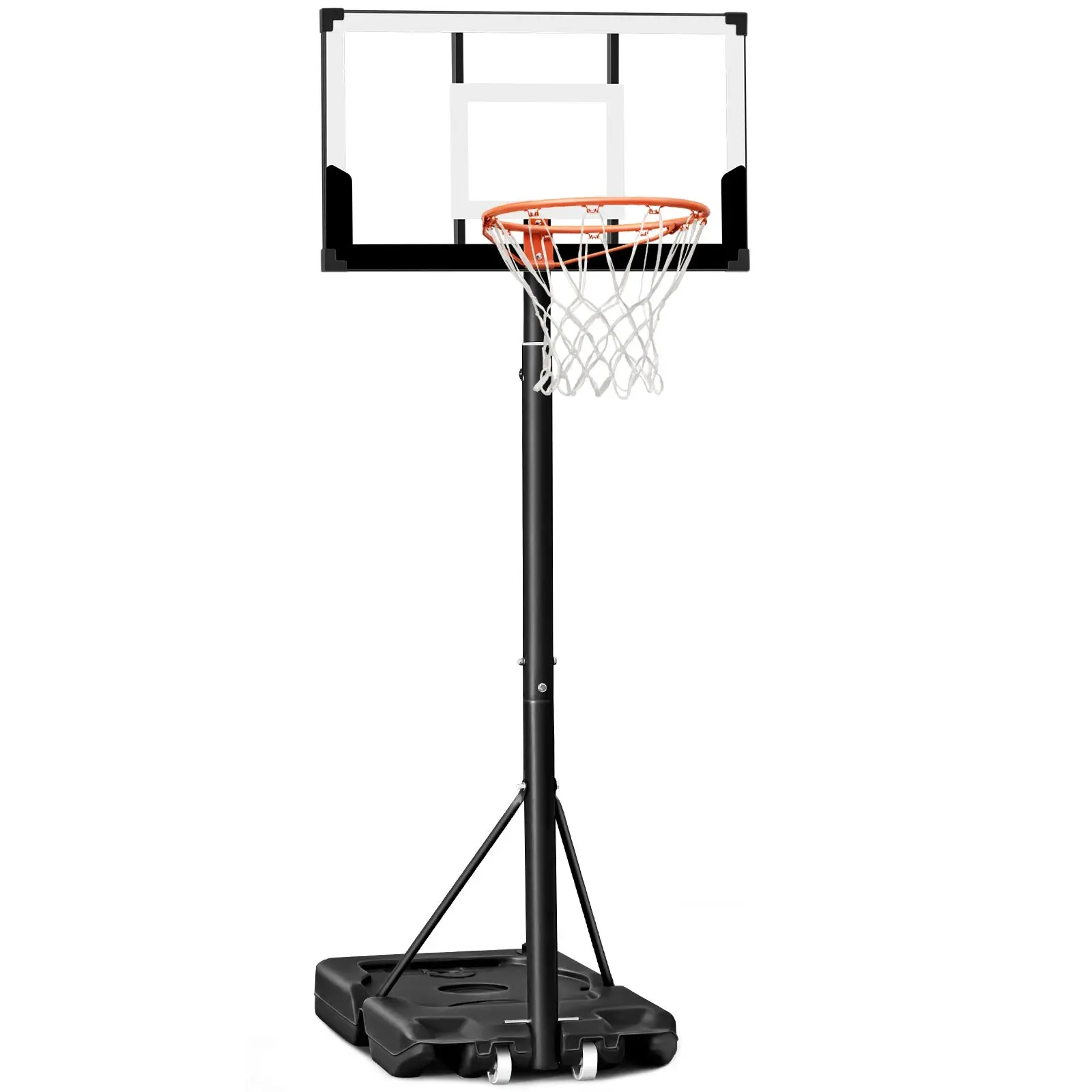 ️Sturdy Construction: 16-inch shock-absorbing rim with dual-spring damping and bumper, paired with a larger HDPE base and durable PC backboard.