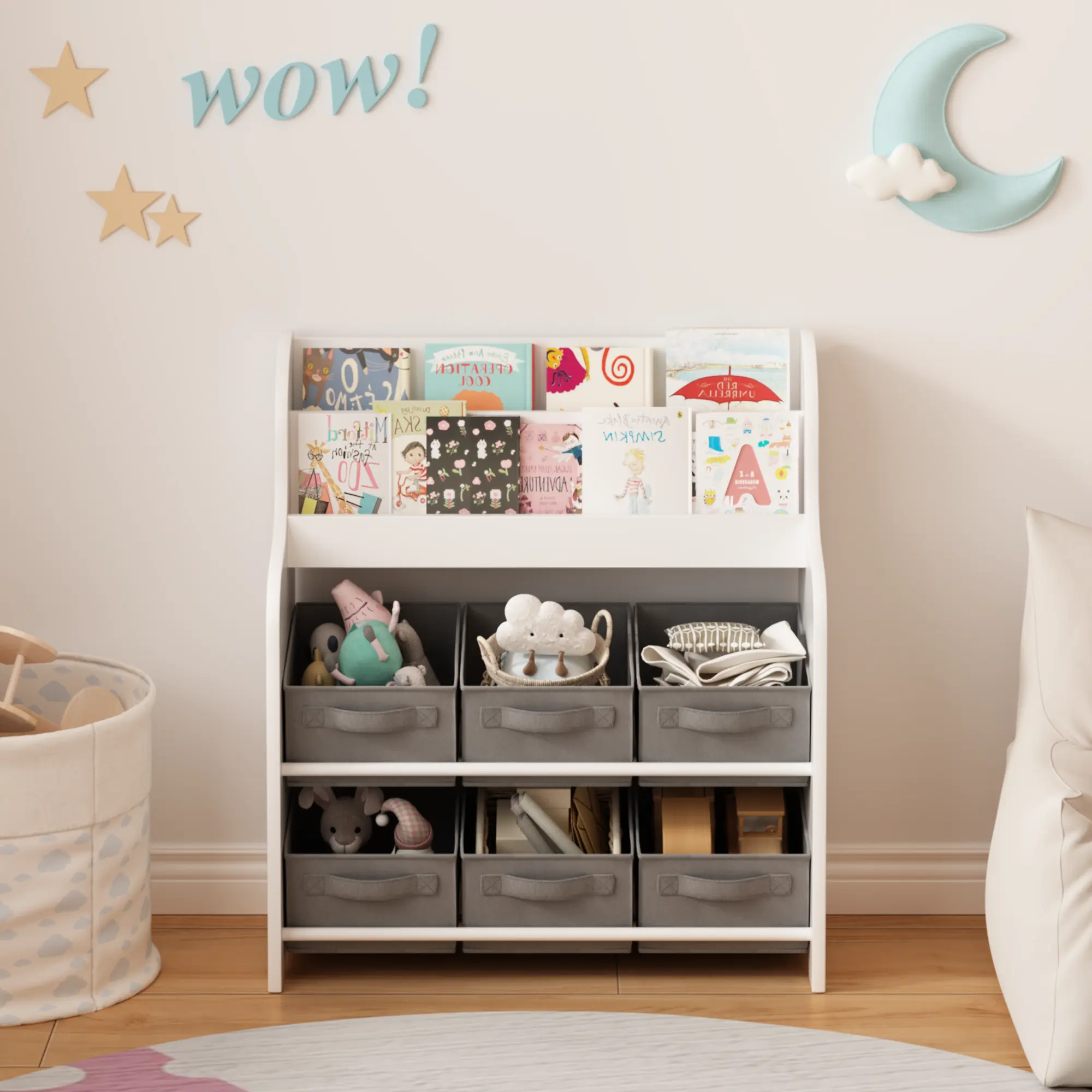 Compact design fits perfectly in playrooms, bedrooms, nurseries, or classrooms. It combines a book rack and toy organizer in one piece, maximizing storage without taking up extra space.