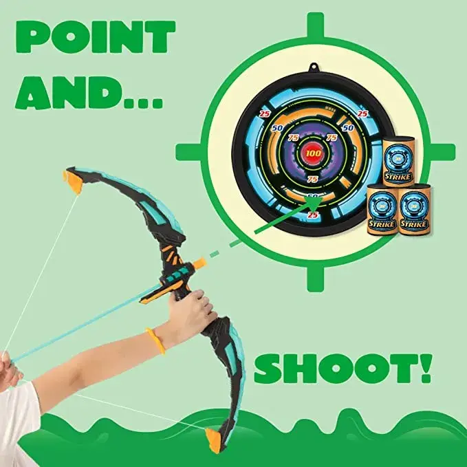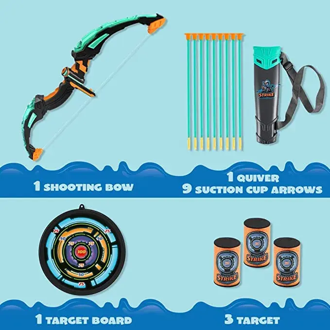 ·Includes: 1 bow, 9 suction cup arrows, 1 arrow case, 1 plate target, and 3 foam targets.
