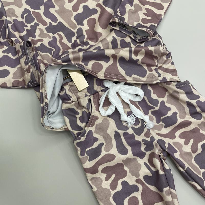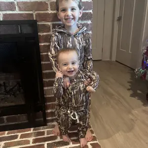 The cutest camo outfit for my toddler boy! He loves feeling like he matches big sister’s boyfriend! Super soft material and great fit! We ordered a 2T and it fit my little guy perfectly at 22 months. He is normally on the smaller side, so maybe size up if you’re wanting to stay in it longer. 🤎