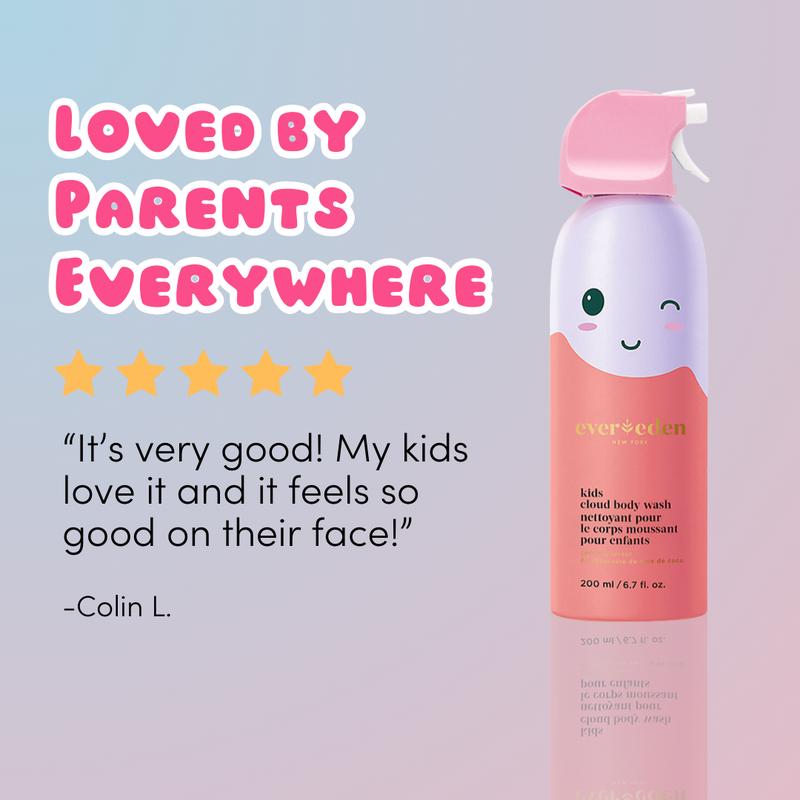 This is by far the best product I have purchased in a long time! The smell is fantastic, the texture of the cloud foam is amazing, and it's super fun for my kids to spray out themselves in the bottle! I also appreciate that one bottle is blue toned and one is pink toned, perfect for both my son and daughter to have their own! Will buy again!