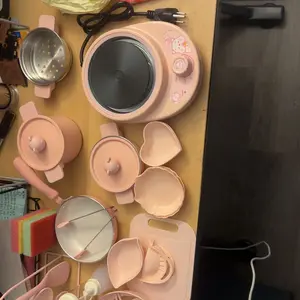 Now the pots and pan are tiny BUT so freaking cute and honestly enough for a lunch serving. The knife is NOT sharp enough, but we can sharpen it ourselves. I bought one for each of my kids so they can cook their lunch at their desks, they made breakfast and a yummy orzo pasta today 10/10