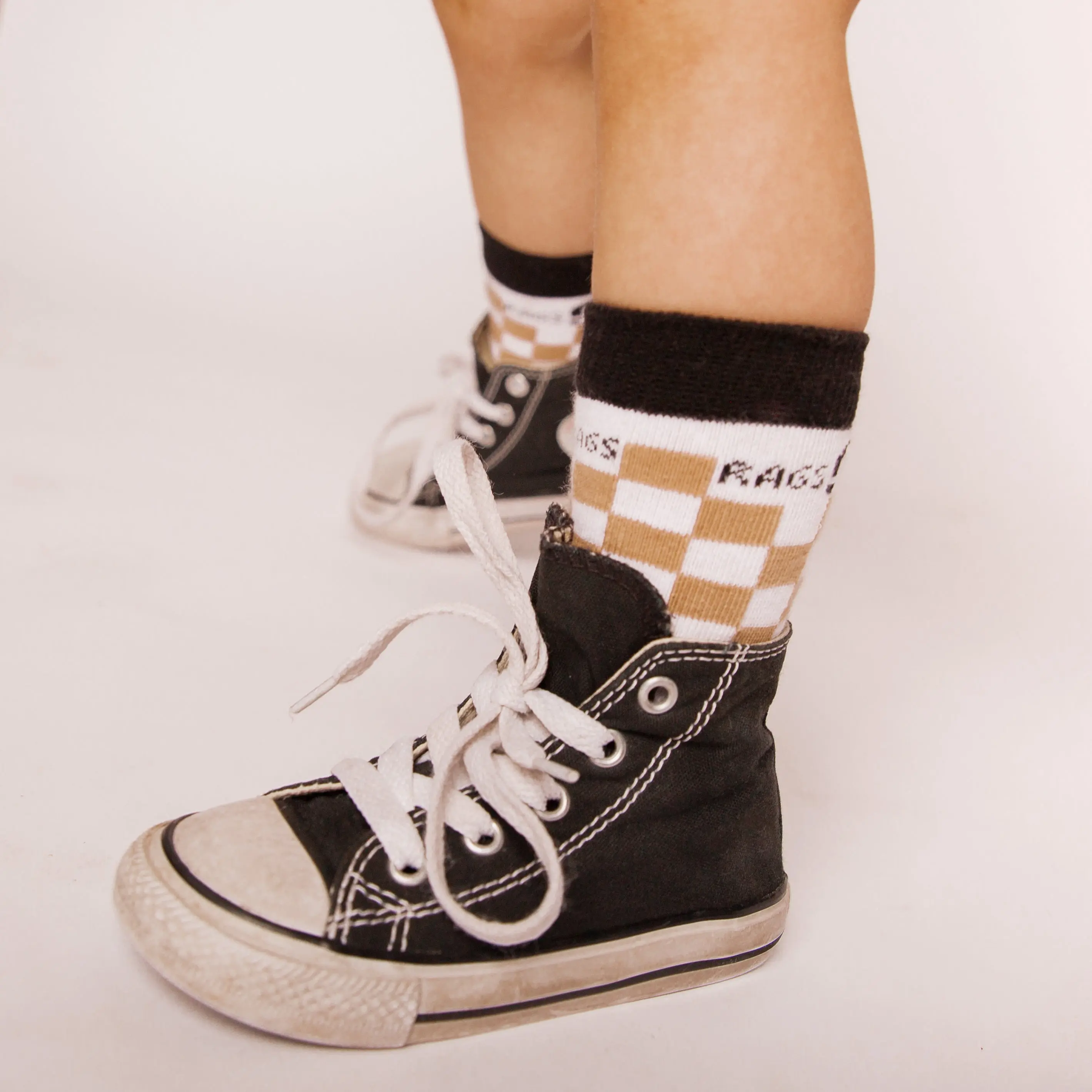 Kids Camel Check Crew Socks - Comfy & Comfortable Kidswear for Every Day Outfits