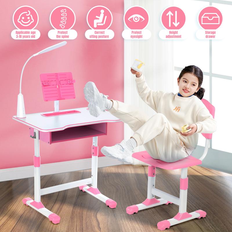 My daughter loves it. Wanted to sit at it immediately. Easy setup/manual. Didn’t know it would come with a desk lamp which has 3 light modes, a dimmer button, and a power button. Love this item!