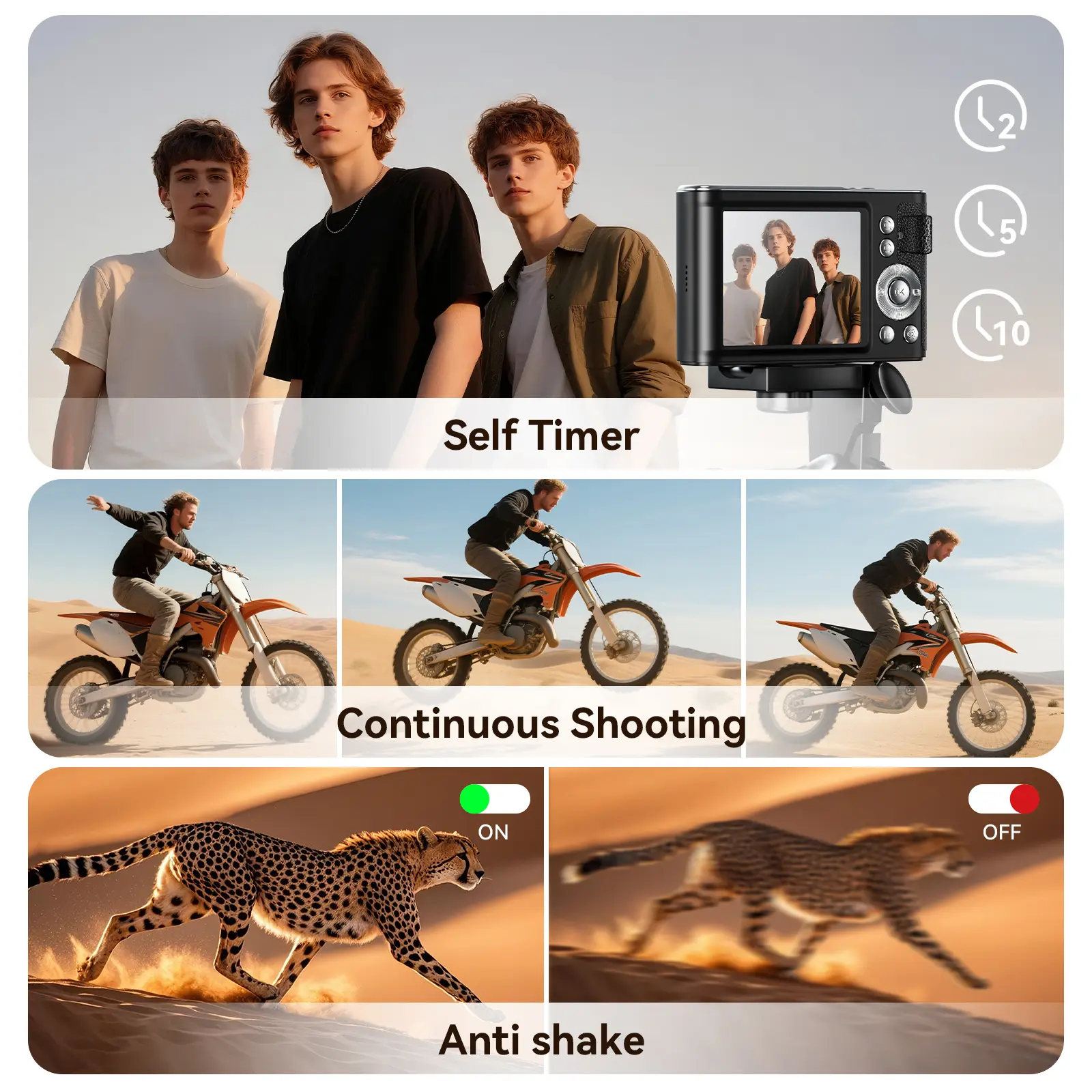 Perfect Gift: This point and shoot digital cameras is an entry-level model designed to cultivate beginners' interest in photography, perfect for kids and teens aged 5-13 who want to take nice family photos, capture travel memories, or simply enjoy the art of photography. Combining quality, a cute design, and multi-functionality, it includes everything needed to get started, making it an ideal gift for boys, girls, and teens who love photography