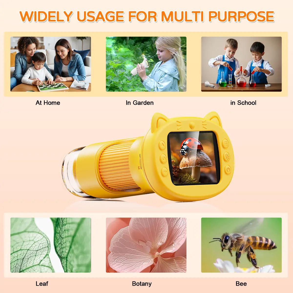Equipped with a 2.4-inch HD IPS display and a 1080P high-definition lens, this microscope delivers bright, vivid, and crystal-clear images. Kids can observe every tiny detail with enhanced clarity, reduced eye strain, and a truly immersive viewing experience—whether learning indoors or exploring outdoors.