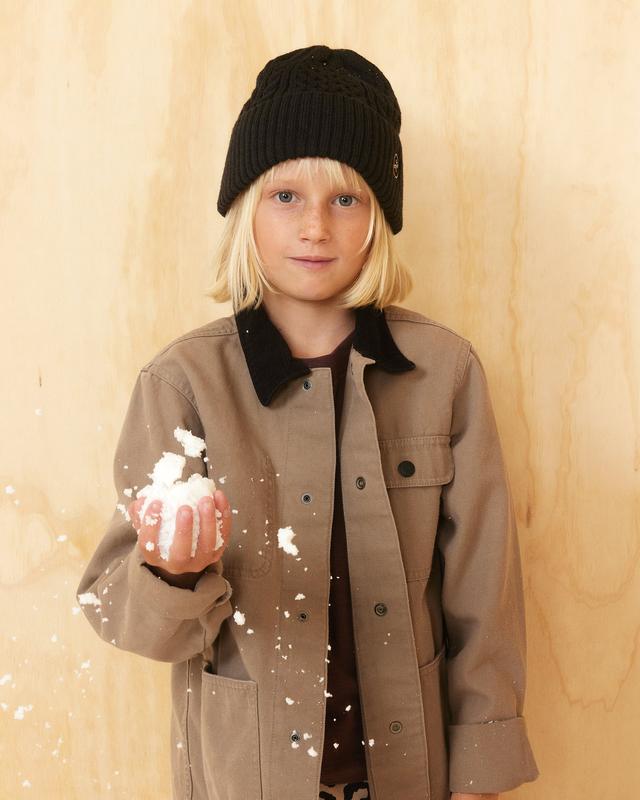 5. Kids Vulcan Cable Knit Beanie in Black