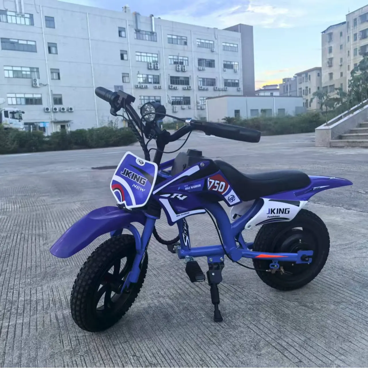The motorcycle has a 25.2V, 2600mAh, 65.52Wh battery. It takes 3 hours to charge fully. The net weight is 10 kg, and the gross weight is 13.5 kg. The package size is 850245530mm. Available in red and blue colors. Perfect for ages 3+.