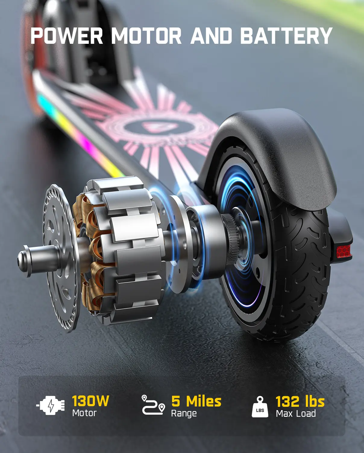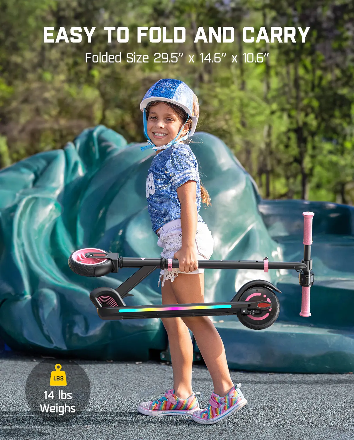 ·Ride with a Soundtrack & Light Show: This kids scooter features a built-in Bluetooth speaker, letting kids play their favorite tunes as they ride. Adding to the fun and safety are dazzling rainbow lights with 6 dynamic modes that pulse to the music, ensuring they're seen and heard after dark