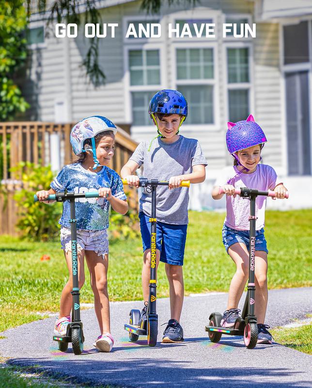 FanttikRide C9 Apex Kids Electric Scooter, Bluetooth Music Speaker, Colorful Light for Kids 8-12, 3.9-5.2 ft, 132 lbs, 5 Miles Range, Up to 40 min Ride Time, 5/8/10 MPH, 3 Adjustable Heights