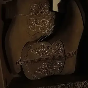 •Gold-tone studding and embroidery