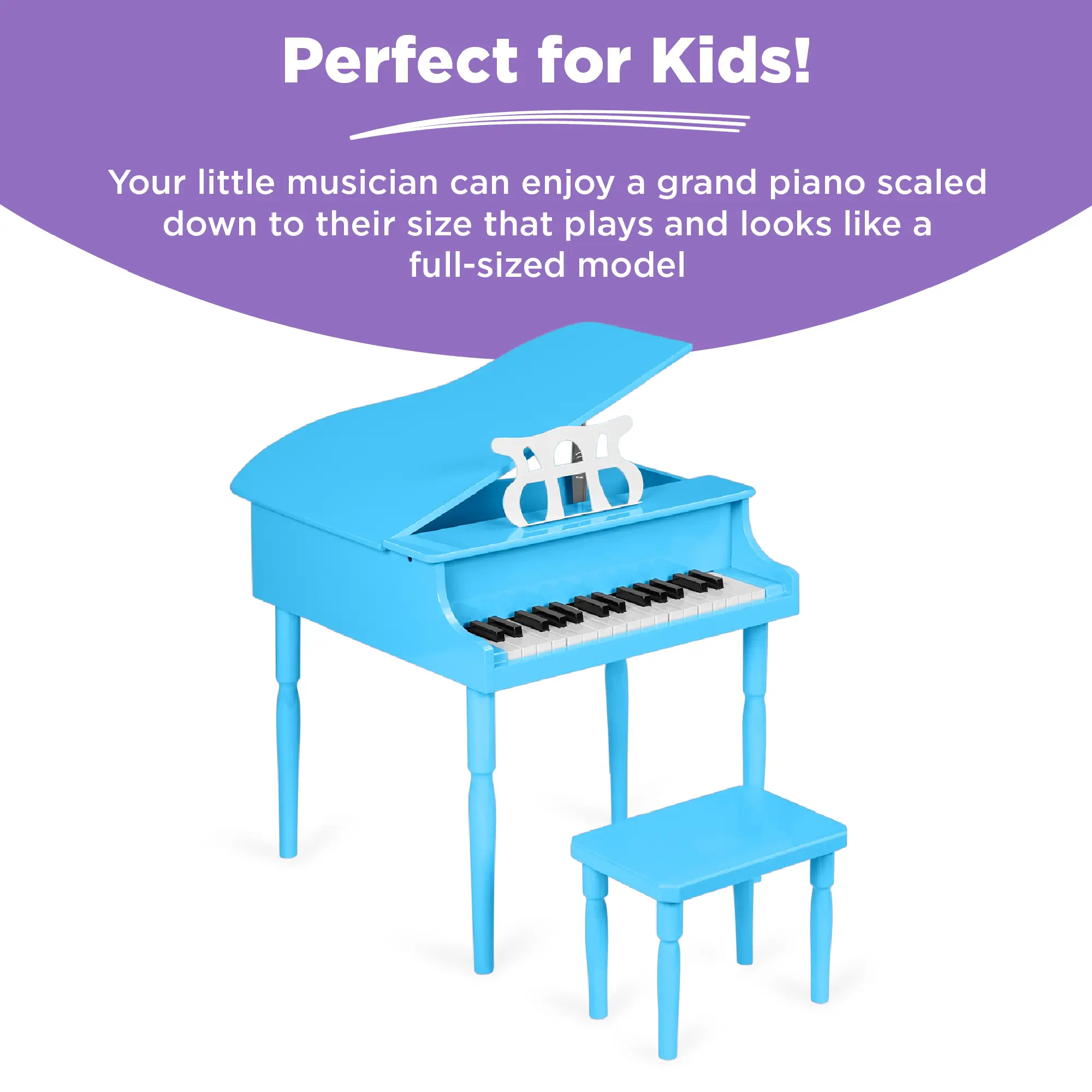 RICH & WARM TONE: Your child can play a tune and develop their musical ear with their first piano, and even open the top to amplify the acoustics, just like a standard grand piano
