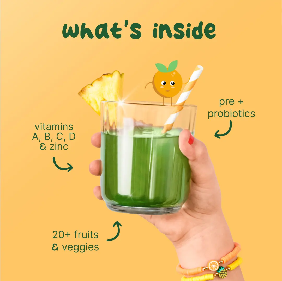 Give your child the gift of healthy nutrition with Bloom Nutrition Kids' Greens & Superfoods Powder. Say goodbye to the daily vitamin struggle and hello to a delicious fruity juice they will love!