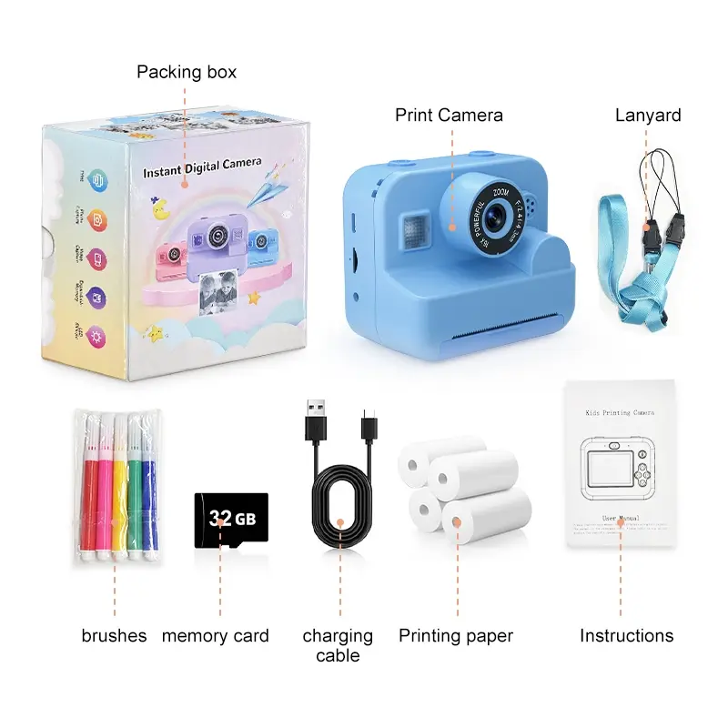 ·Versatile Play Options - Supports photo printing, outline drawing printing, cute frames, and filters. Lets your child capture and print their favorite photos in seconds - unleash imagination and creativity freely!