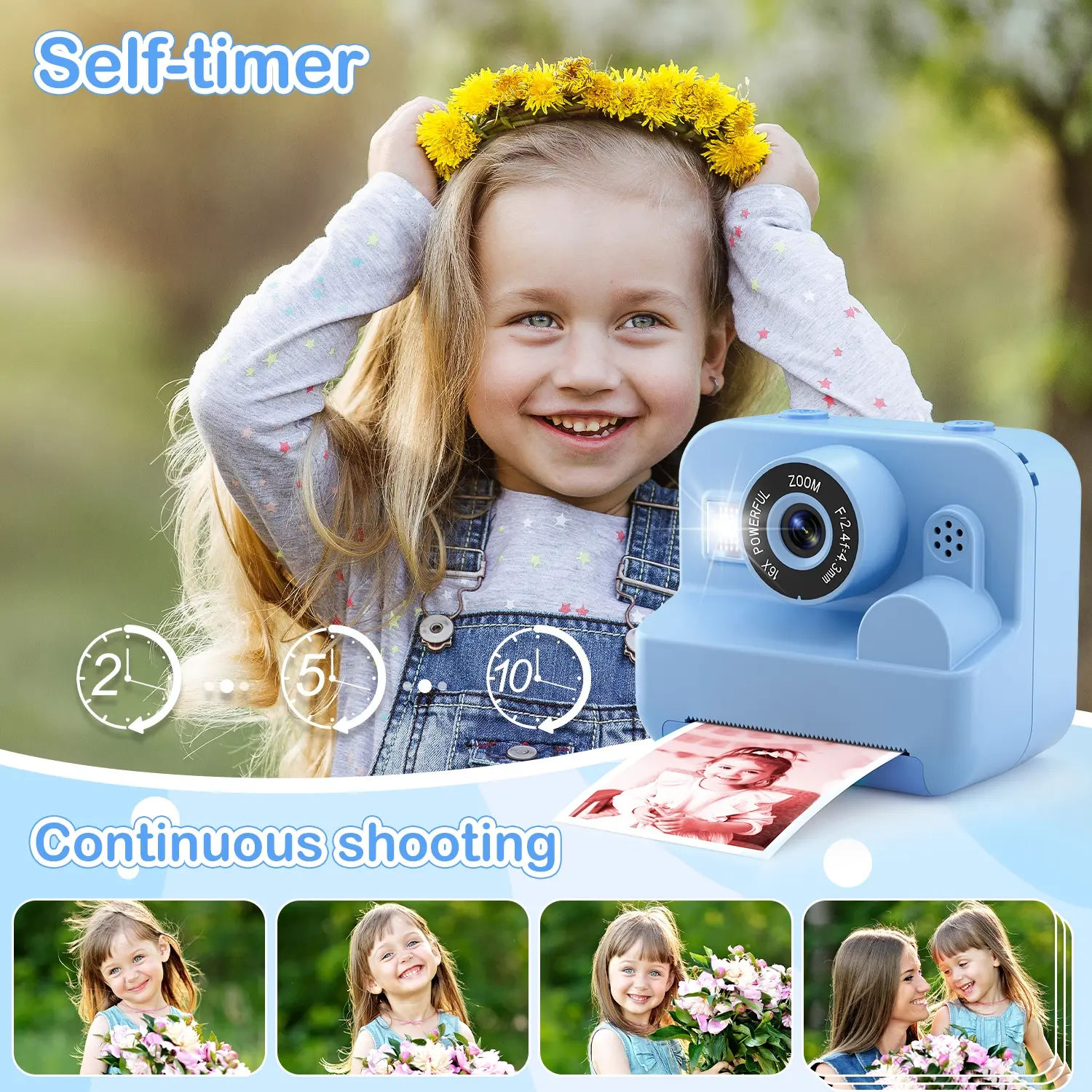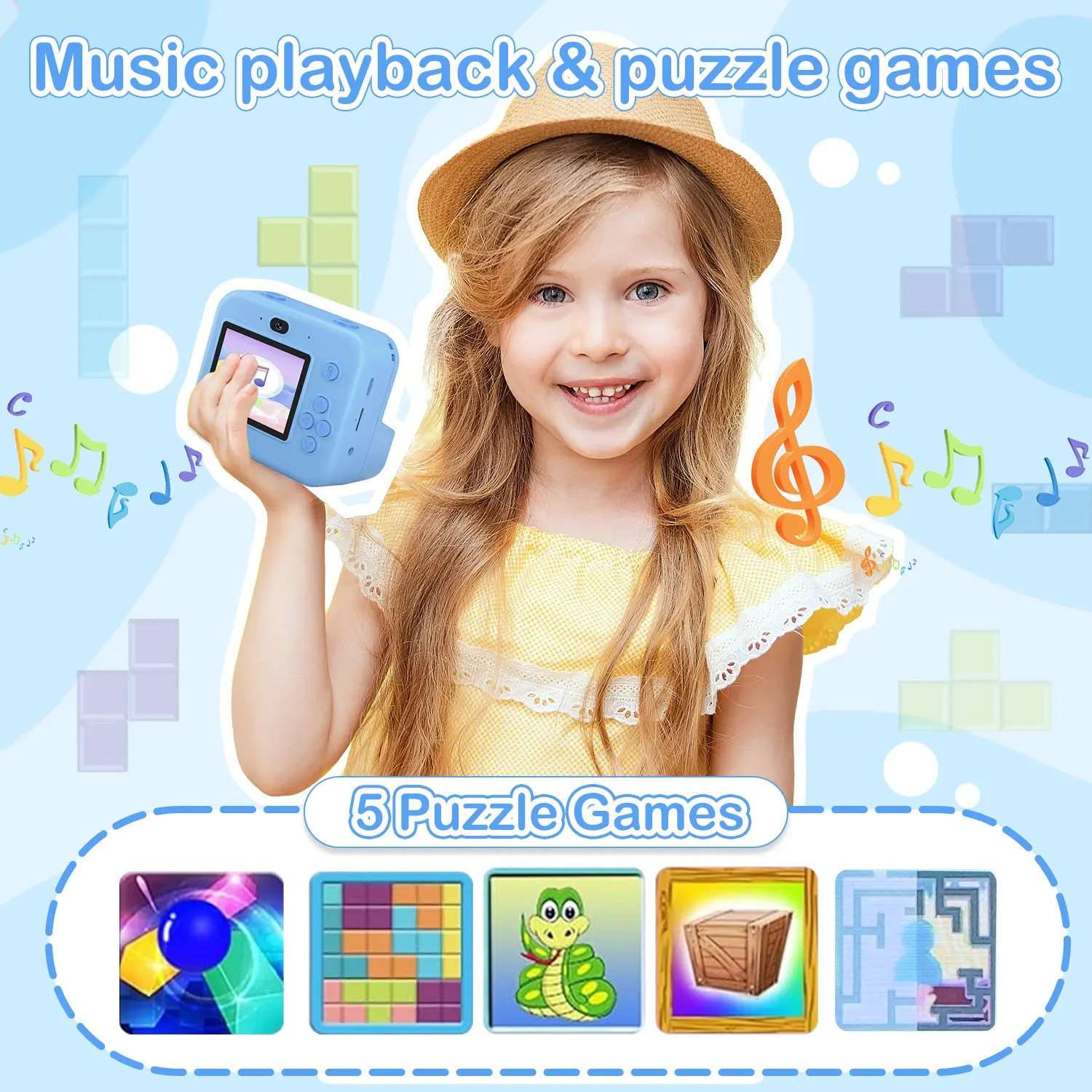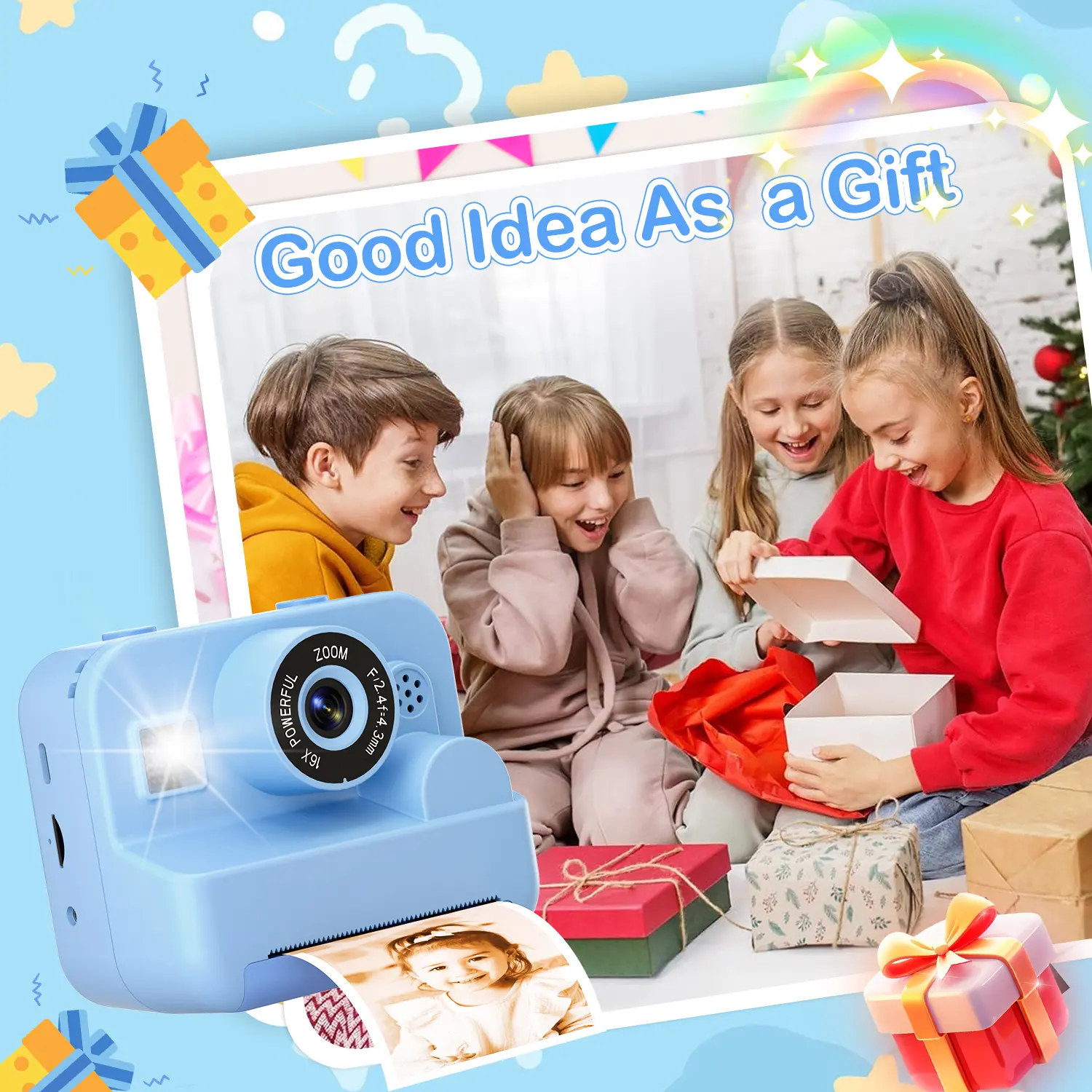 ·Multi-Function & High Configuration - Dual-lens design (1080P rear camera + selfie camera) with 2.4" color screen, 16x zoom, instant printing, 2 print modes, video recording, games, music, and video playback. Meets all needs of young explorers!