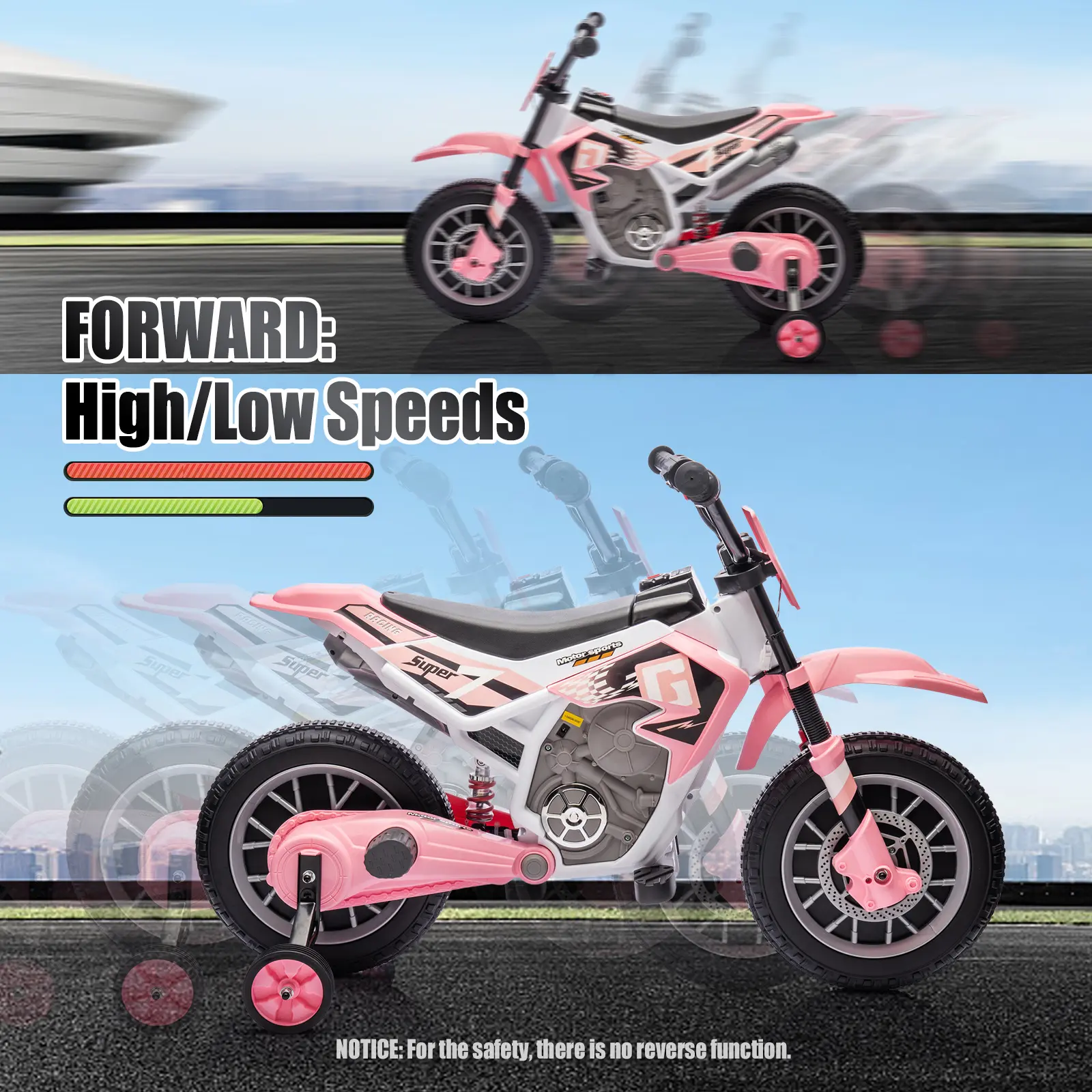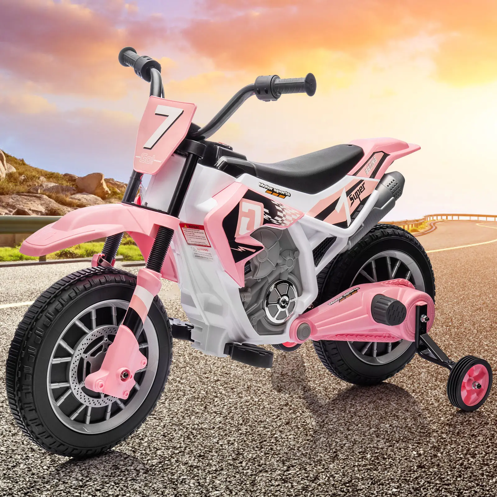 Kids Motorcycle Dirt Bike Off-Road Street Bike with Music Training Wheels Spring Suspension High Low SpeedsKids Motorcycle Dirt Bike Off-Road Street Bike with Music Training Wheels Spring Suspension High Low Speeds