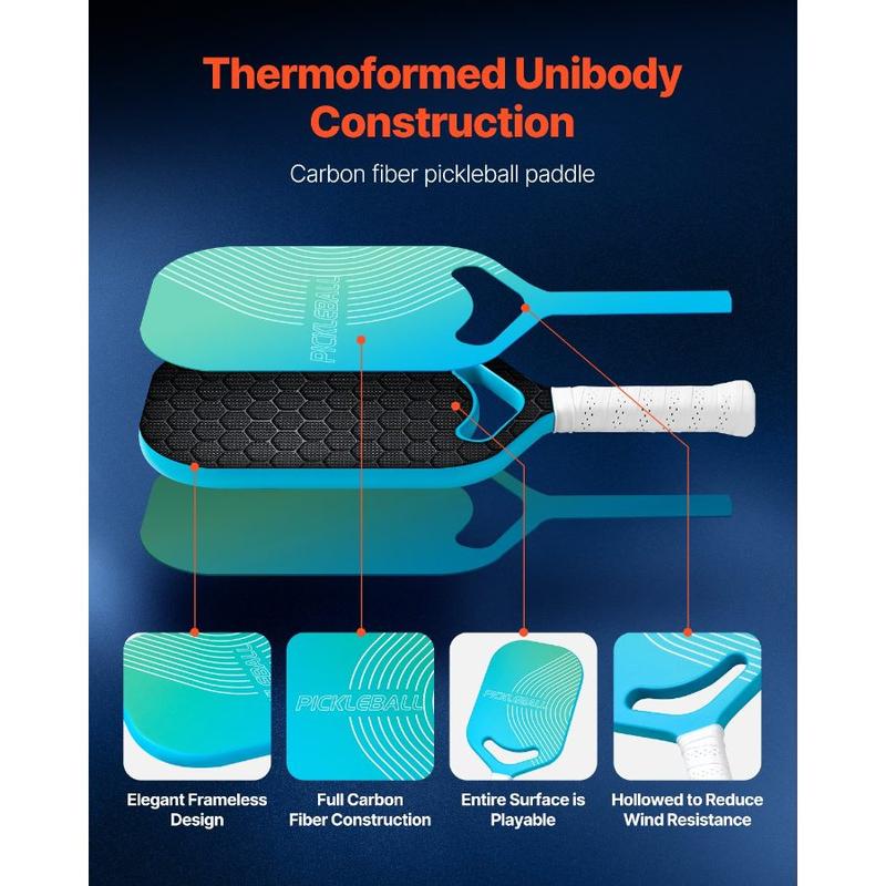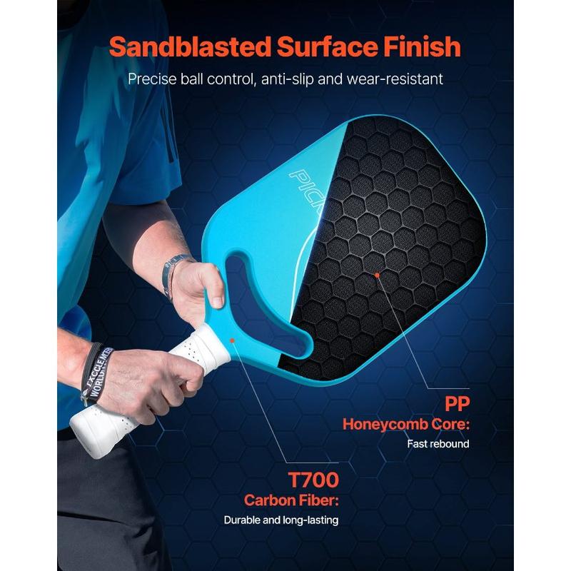 VEVOR Kids Pickleball Paddle, Lightweight Youth Pickleball Paddle with Small Grip and Cute Pattern, Fiberglass Pickle Ball Racket Honeycomb Core, Child Size for Kids, Youth, Boys GirlsVEVOR Pickleball Paddle with Aero Throat, T700 Carbon Fiber Surface & Honeycomb Core, Professional Pickleball Paddle with Increased Power & Control & Spin, Pickle Ball Racket for Adults, Men & Women Aerodynamic Throat Carbon Fiber Honeycomb Structure Thermoformed Unibody Construction Sweat-Absorbing