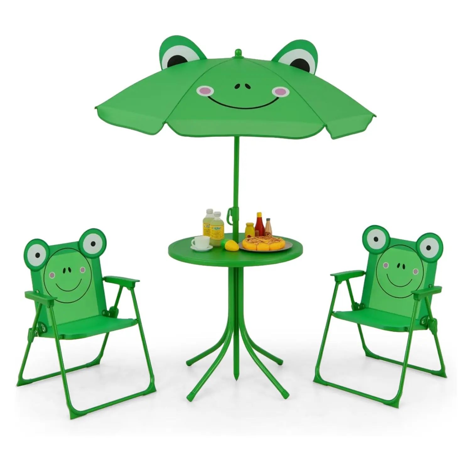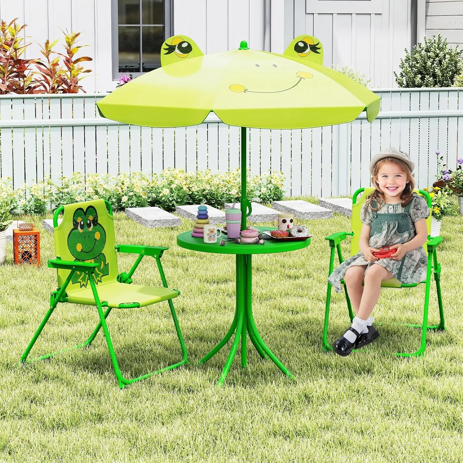 ·Versatile Kids Picnic Table & Chairs Set: Whether it's sun-drenched outdoor picnics or cozy indoor playdates, this 4-piece kids picnic table is ideal for kids' adventures. Including a practical kids outdoor table with a built-in umbrella hole, 2 foldable chairs and an umbrella, your little ones are set for fun wherever they go!