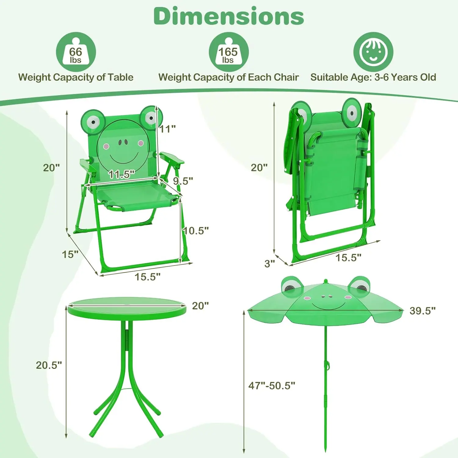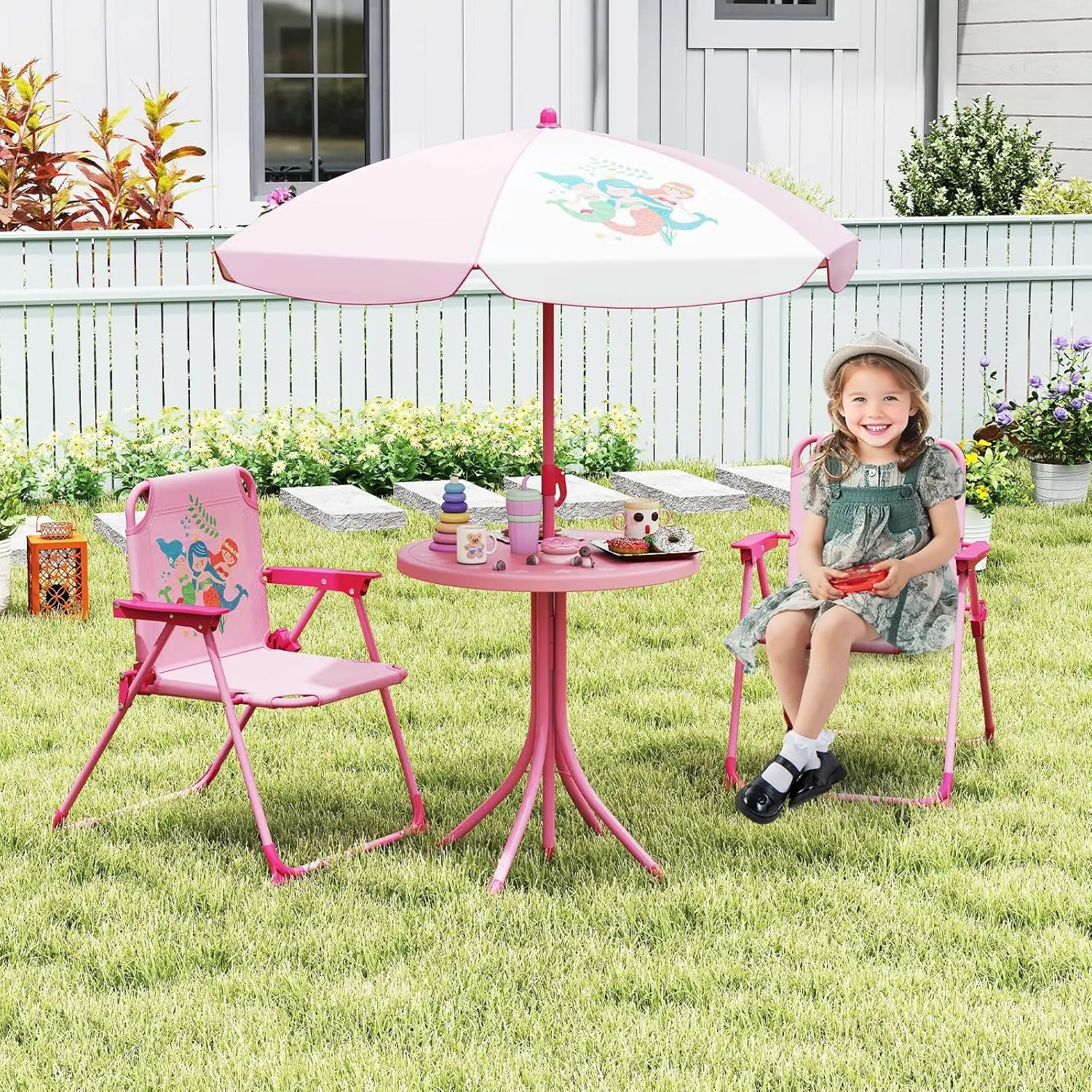 ·Compact & Portable Design: Designed for convenience, the umbrella and 2 chairs can be easily folded. Besides, the entire kids outdoor furniture only weighs 9 lbs. Thus, it's space-efficient for storage and easy for carriage, ideal for outdoor activities such as beach trips, picnics, or playdates in the park.