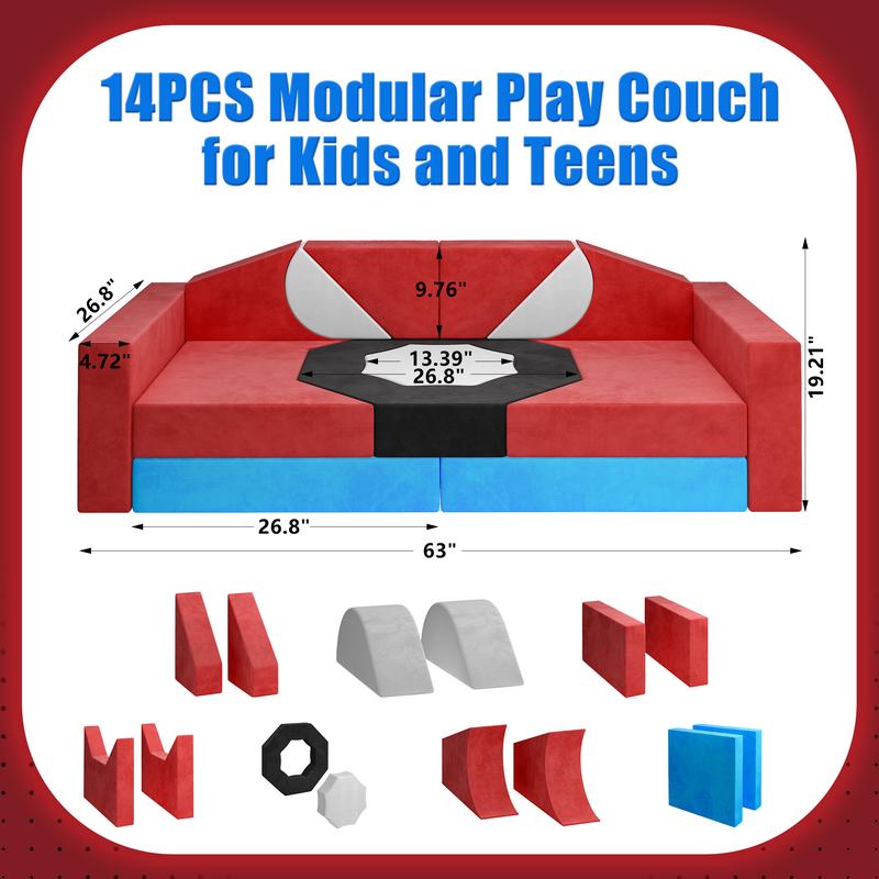 Let your child build forts, obstacle courses, or rocket ships! This soft kids couch set (includes arches, cubes, and octagon shapes) turns any room into a creative play zone. Ideal for ages 3–6.