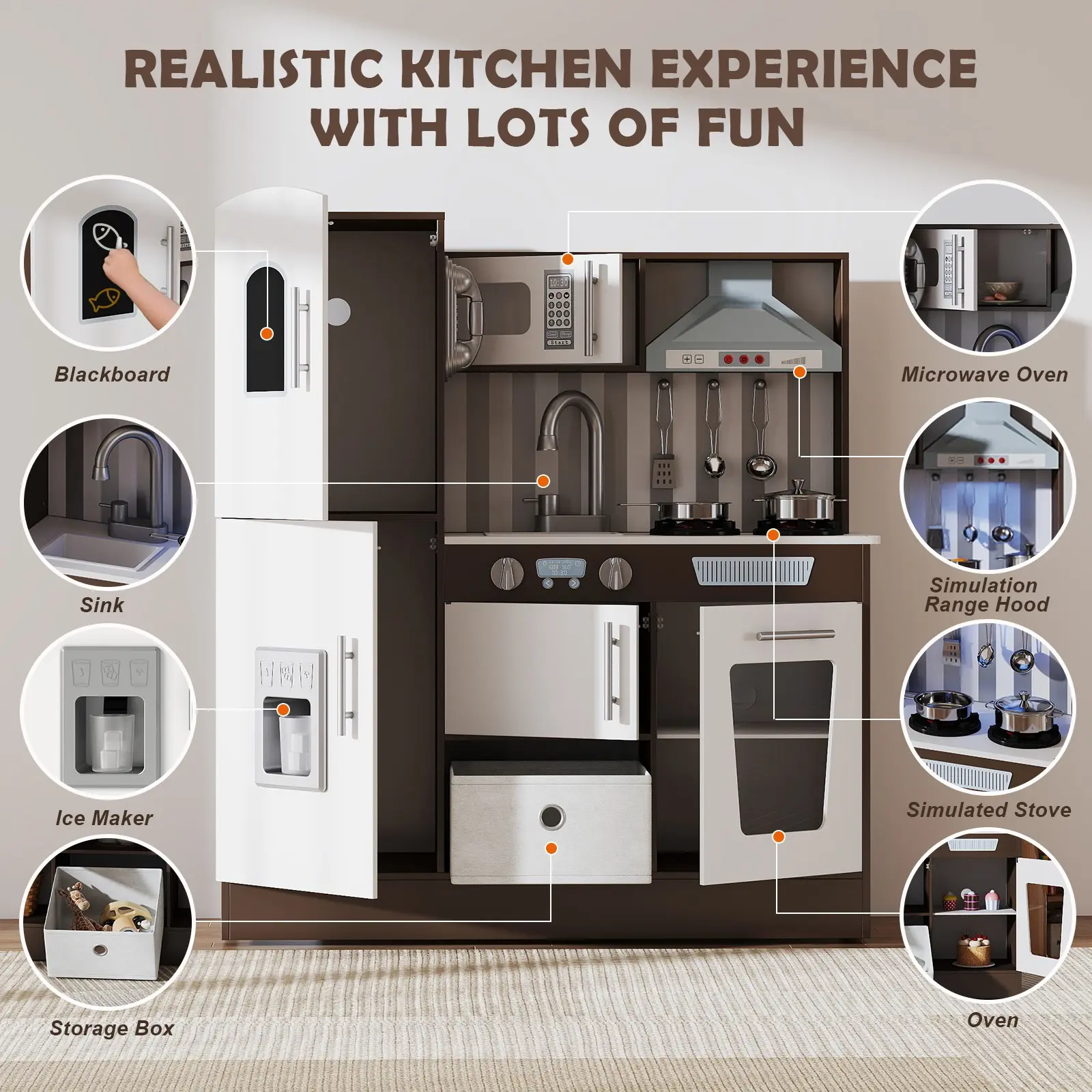 ·Oven and Ice Maker: These accessories add realism to play.
