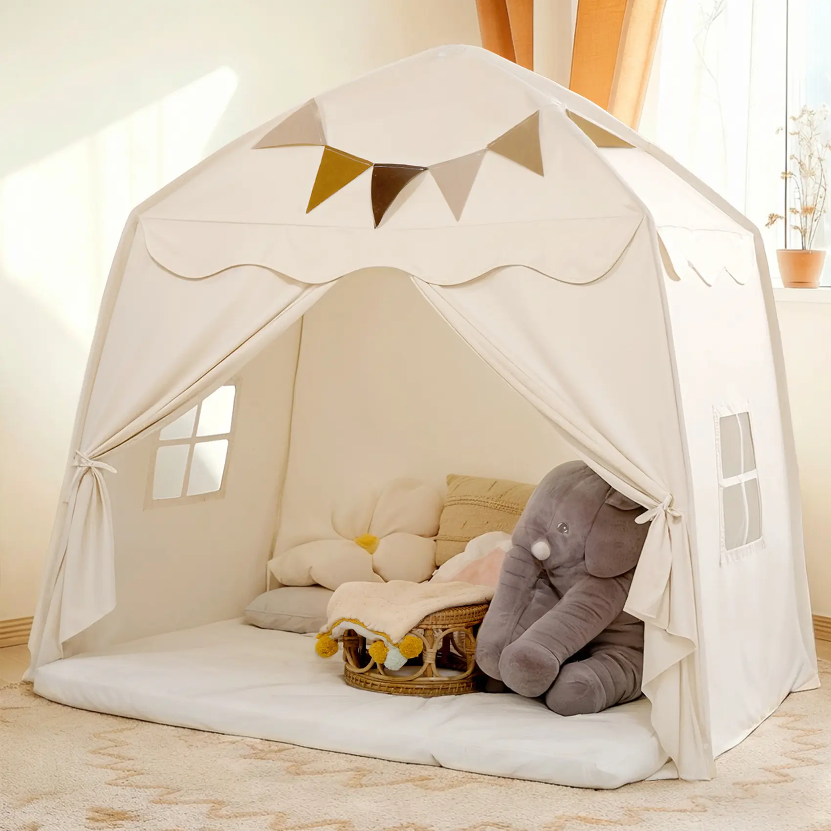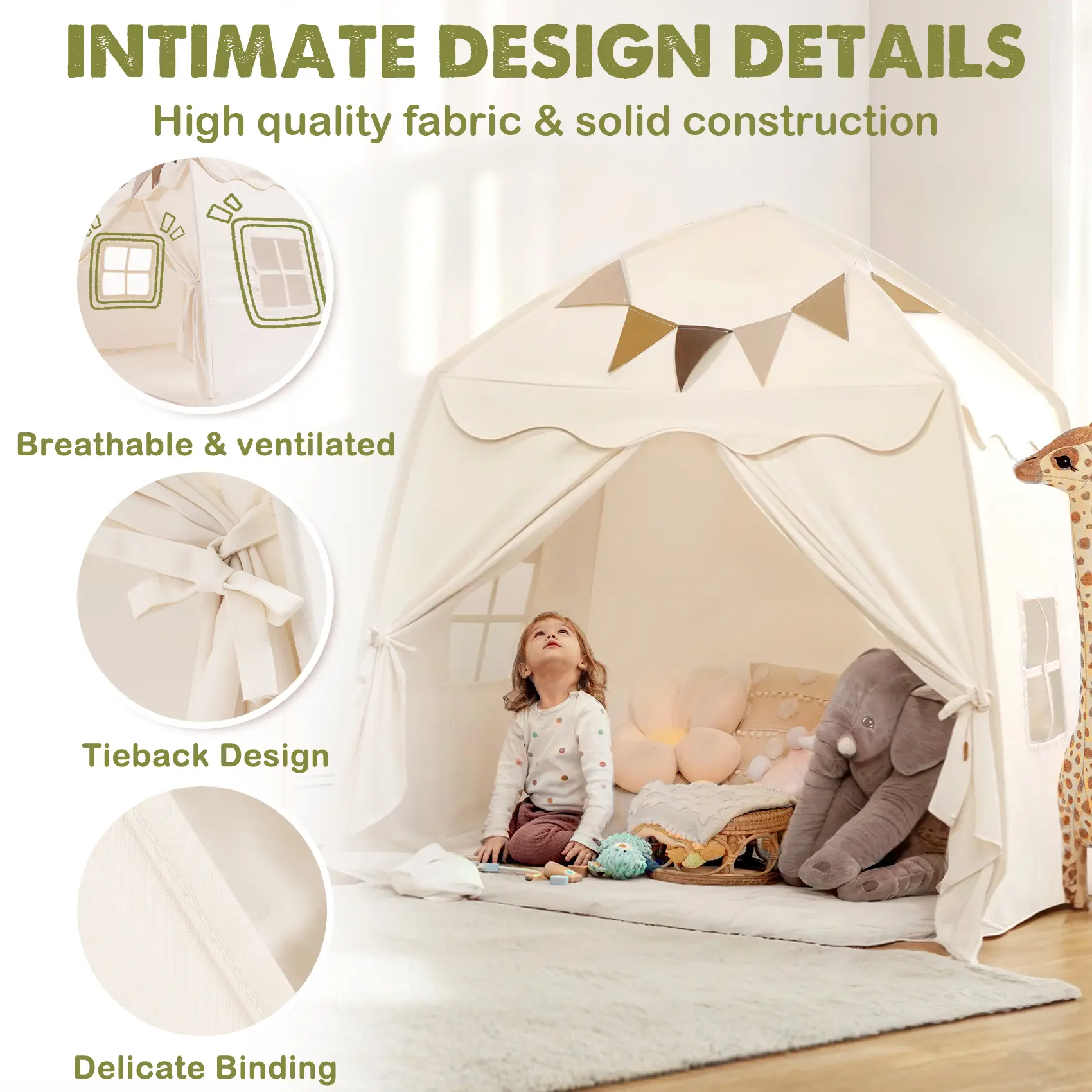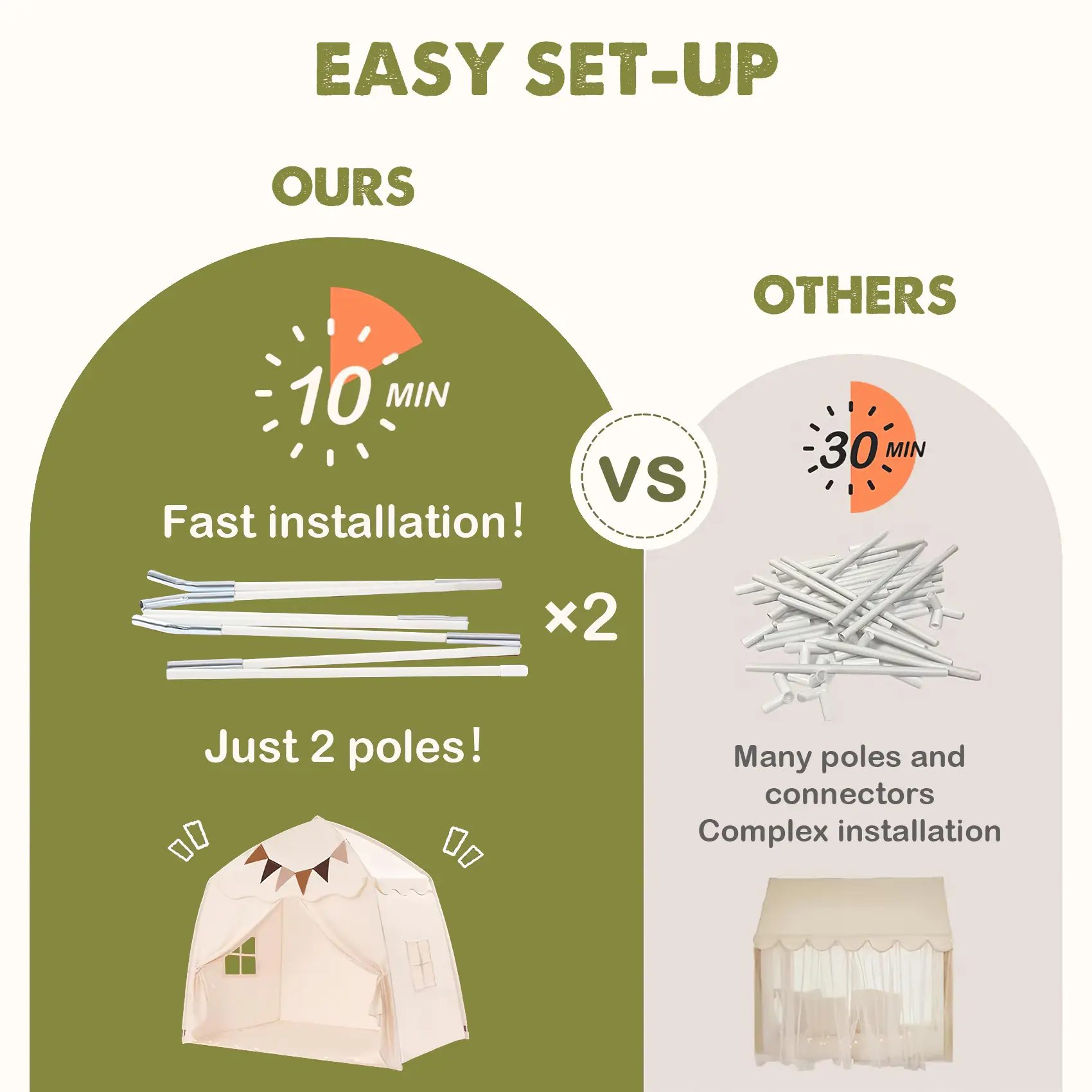 ·Premium Fabric & Sturdy Frame: CPC certified and made from skin-friendly polyester, our playhouse ensures a safe and joyful environment for children. The machine washable fabric makes cleaning effortless. A sturdy PVC frame withstands energetic play, guaranteeing lasting delight and peace of mind for parents.