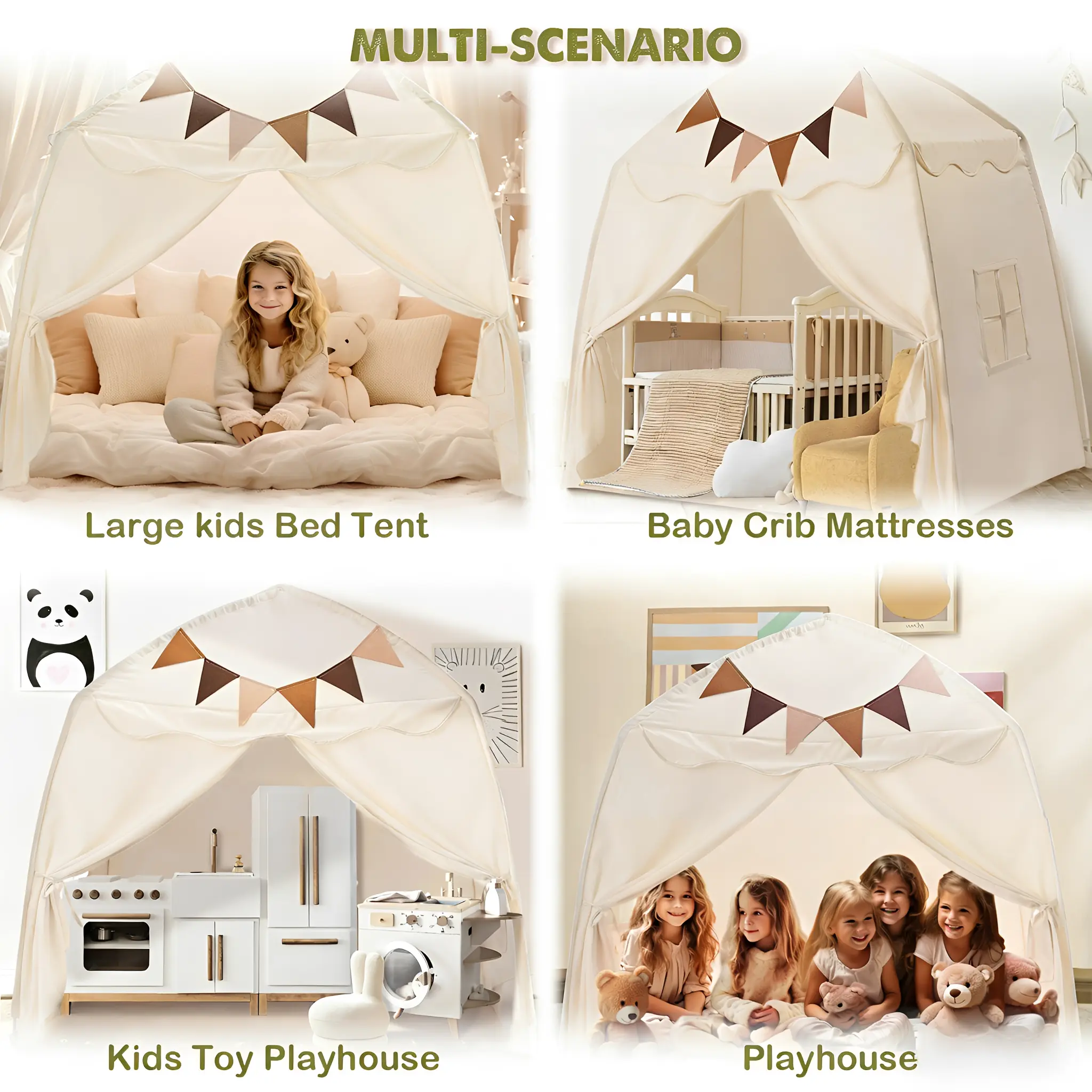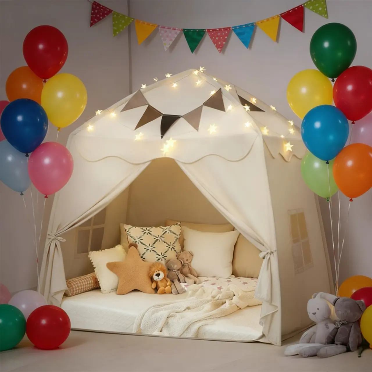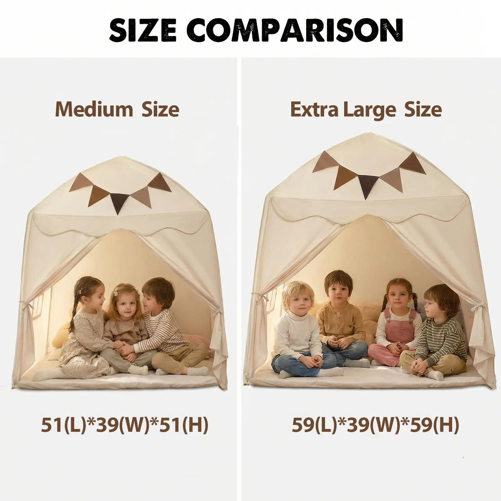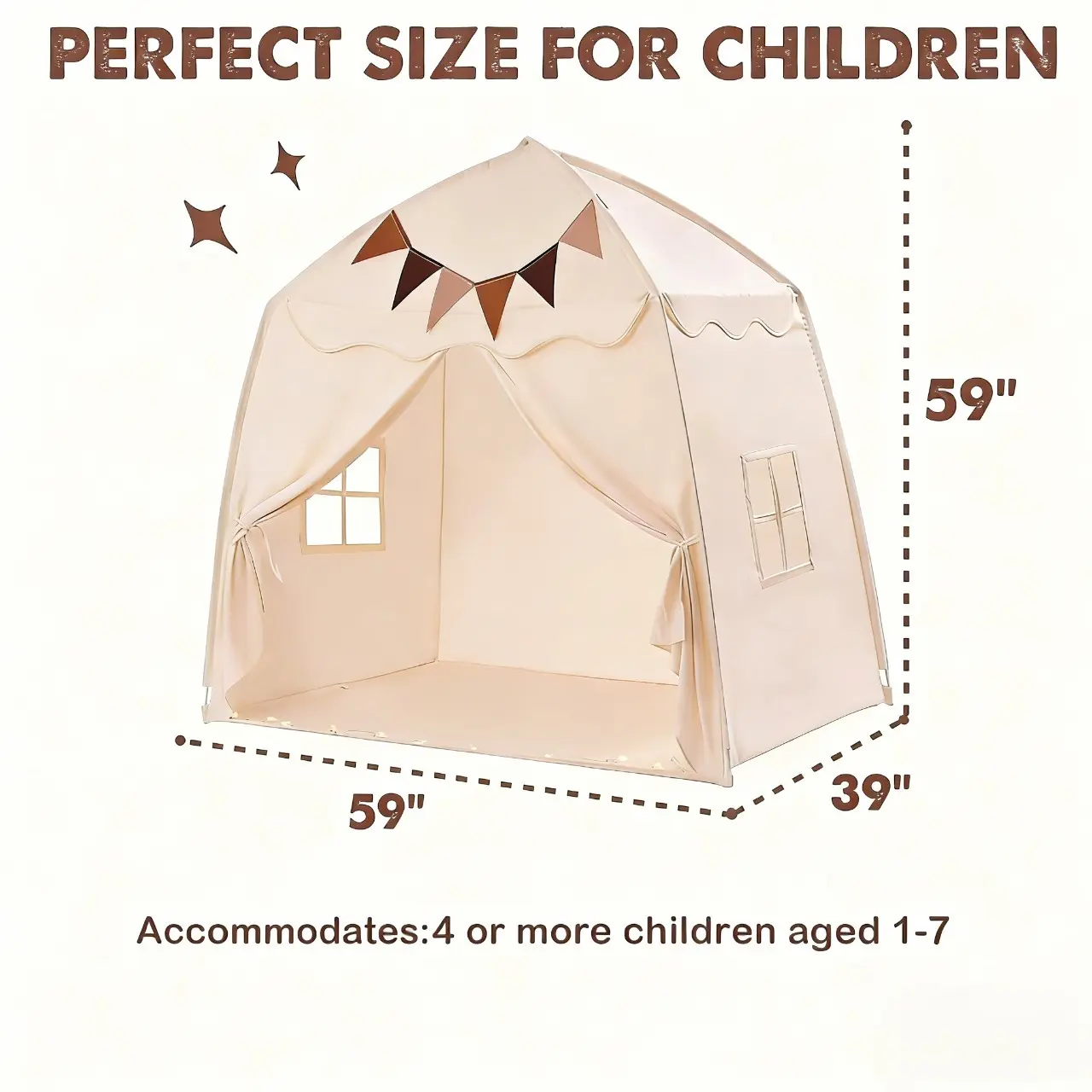 ·Spacious & Versatile: Let your child's imagination soar in our play tent, offering a joyful space for 3-4 kids. Suitable for siblings, friends, and even parents to join in the fun. This cozy haven supports relaxation, play, reading, learning, and hosting parties. Ideal for indoor and outdoor adventures.