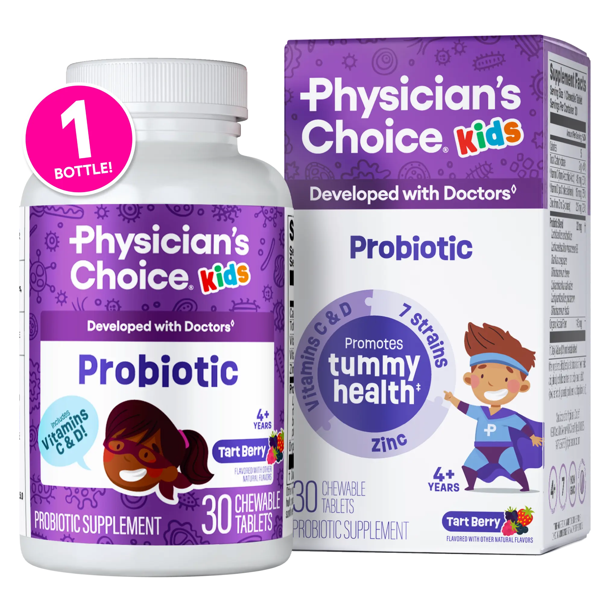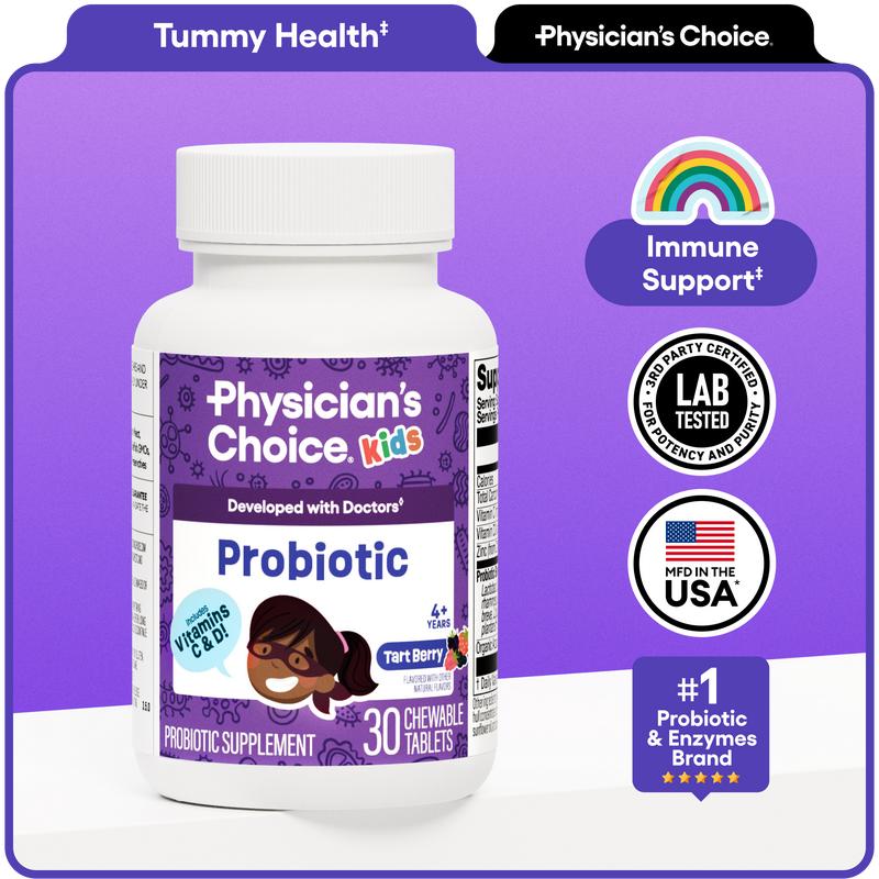 Physician’s Choice Kid’s Probiotic is crafted to support your child’s digestive and immune health. With probiotics, organic prebiotics, and key vitamins to help keep your little ones healthy.