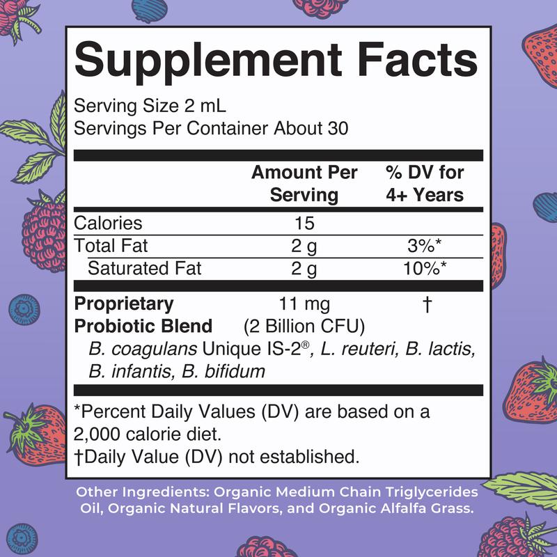 Support your growing child’s microbiome development and gut health with this delicious berry-flavored liquid!