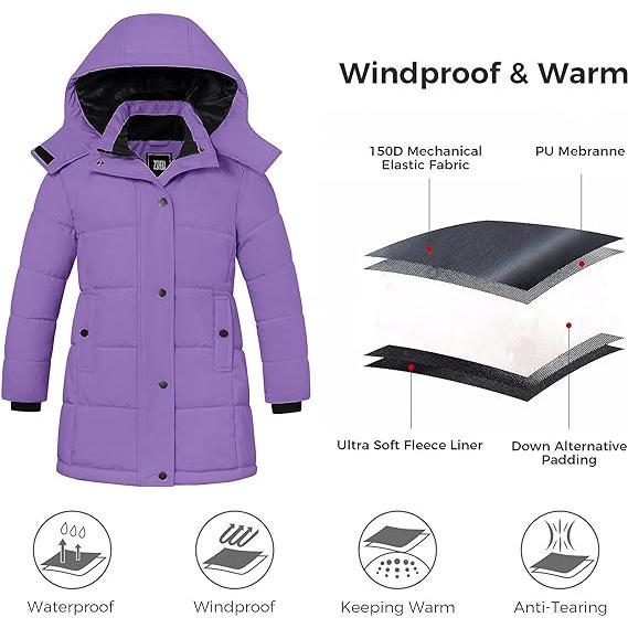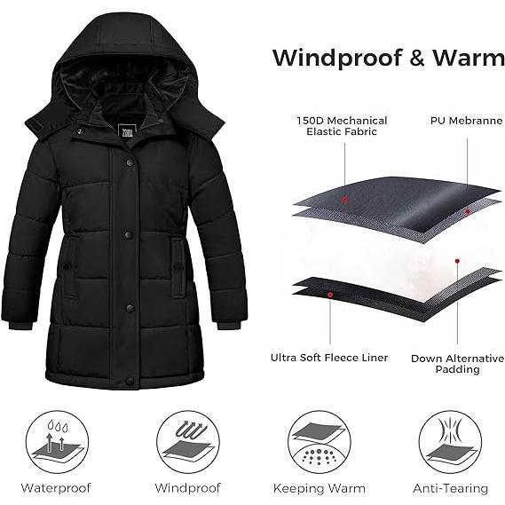 ·Windproof Winter Jackets for Kids - Icy air won't stop kids from enjoying outdoor activities. The kid's jacket is designed with a stand collar, detachable hood, and elastic ribbed cuffs, all the well-designs are effectively preventing wind intrusion and lock in heat, protecting kids' faces, ears, and neck from cold wind.