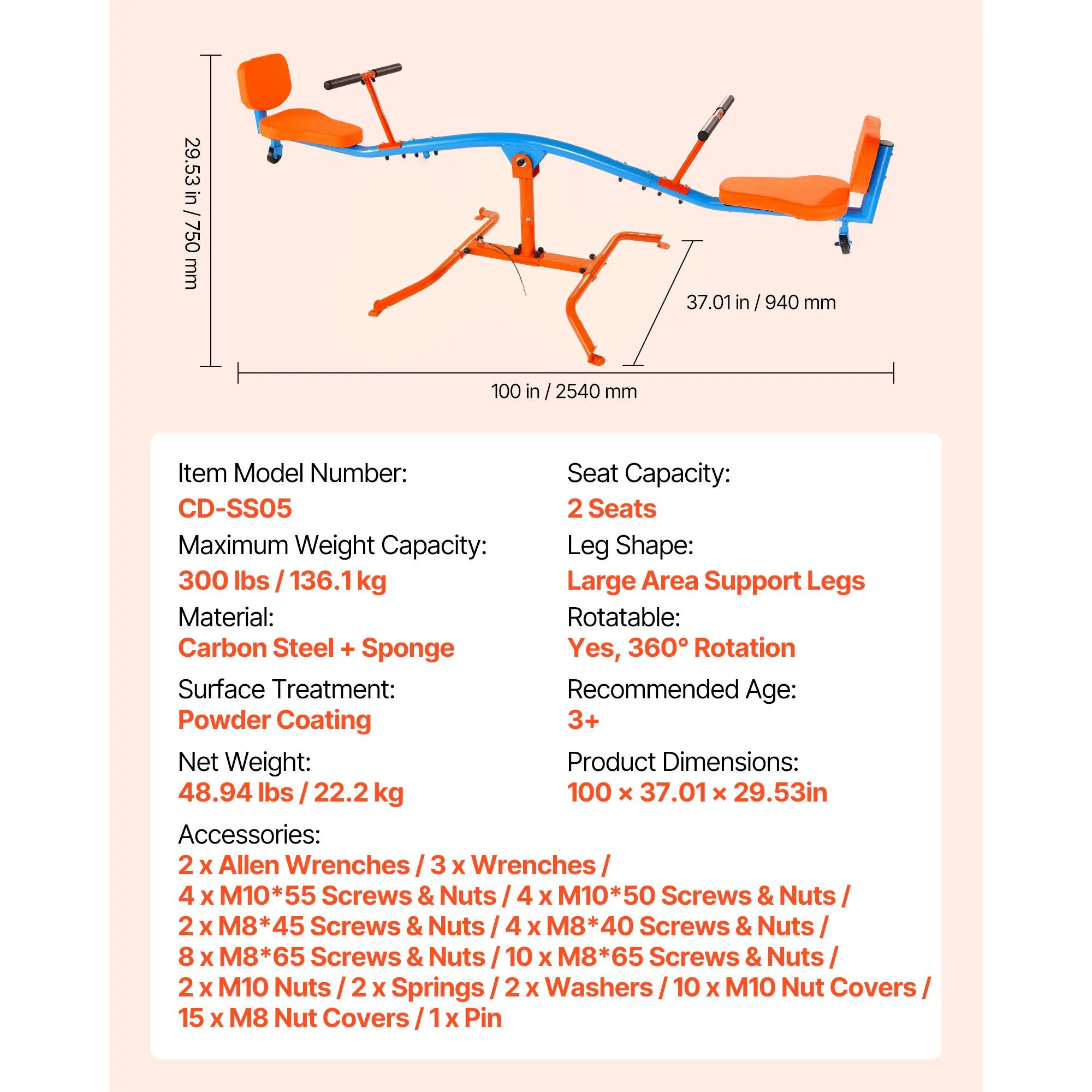 • Comfortable & Stable Seats: Seats fit kids aged 3+ comfortably. Includes φ0.98 in / φ25mm cushioned handrails for easy gripping and balance. Enjoy playtime without fatigue.