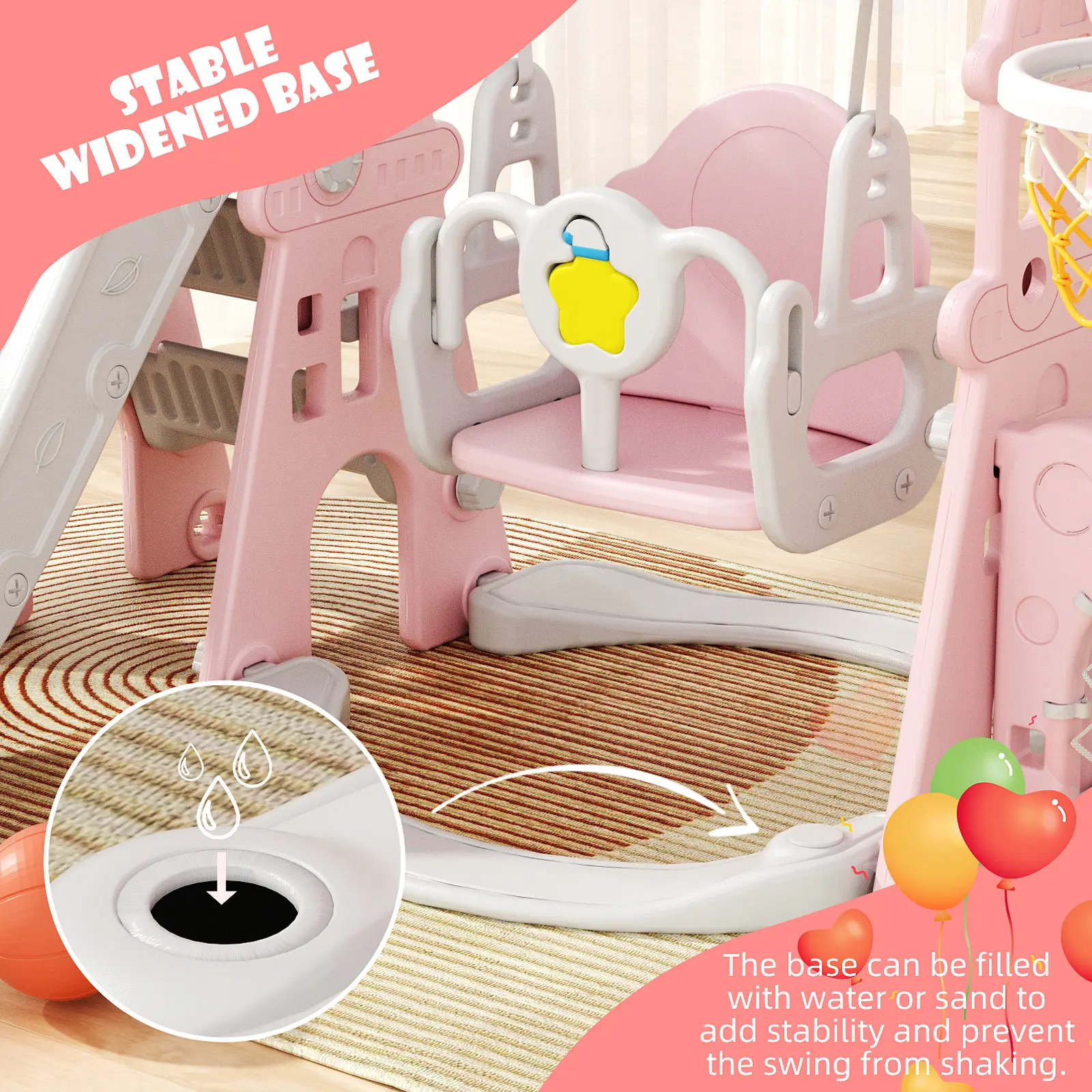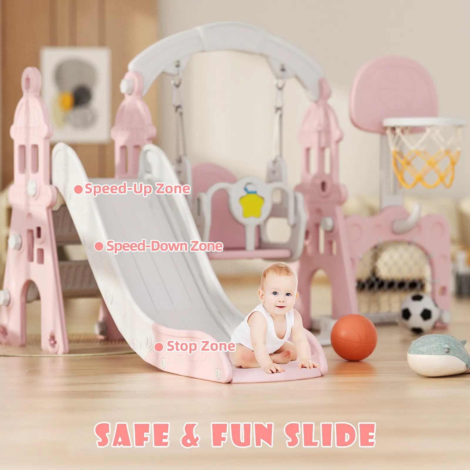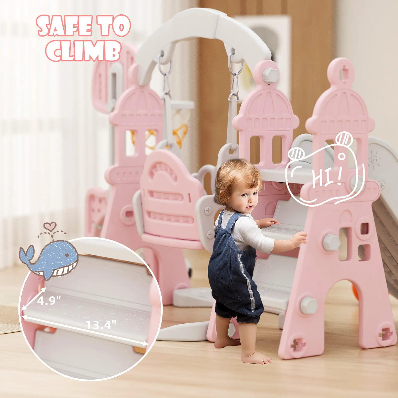 ·Stable and Safe Design: This playset features a widened base for enhanced stability, ensuring a safe and secure playtime experience for your children. The sturdy construction and thoughtful design provide peace of mind for parents while kids enjoy hours of fun on the slide and swing.