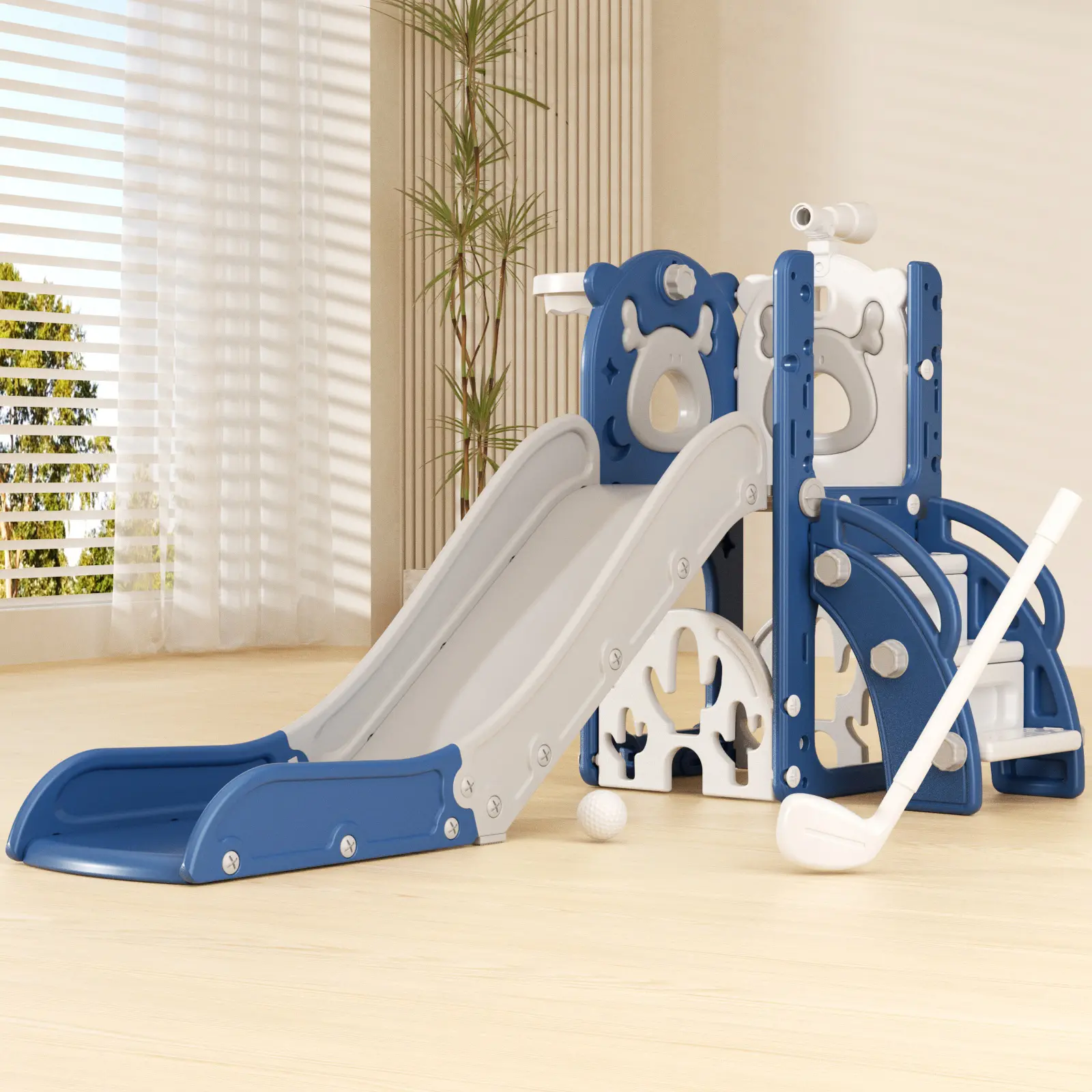 My daughter loves this perfect for an in the house activity when it’s cold and we are unable to go to the park. She loves the slide the most.